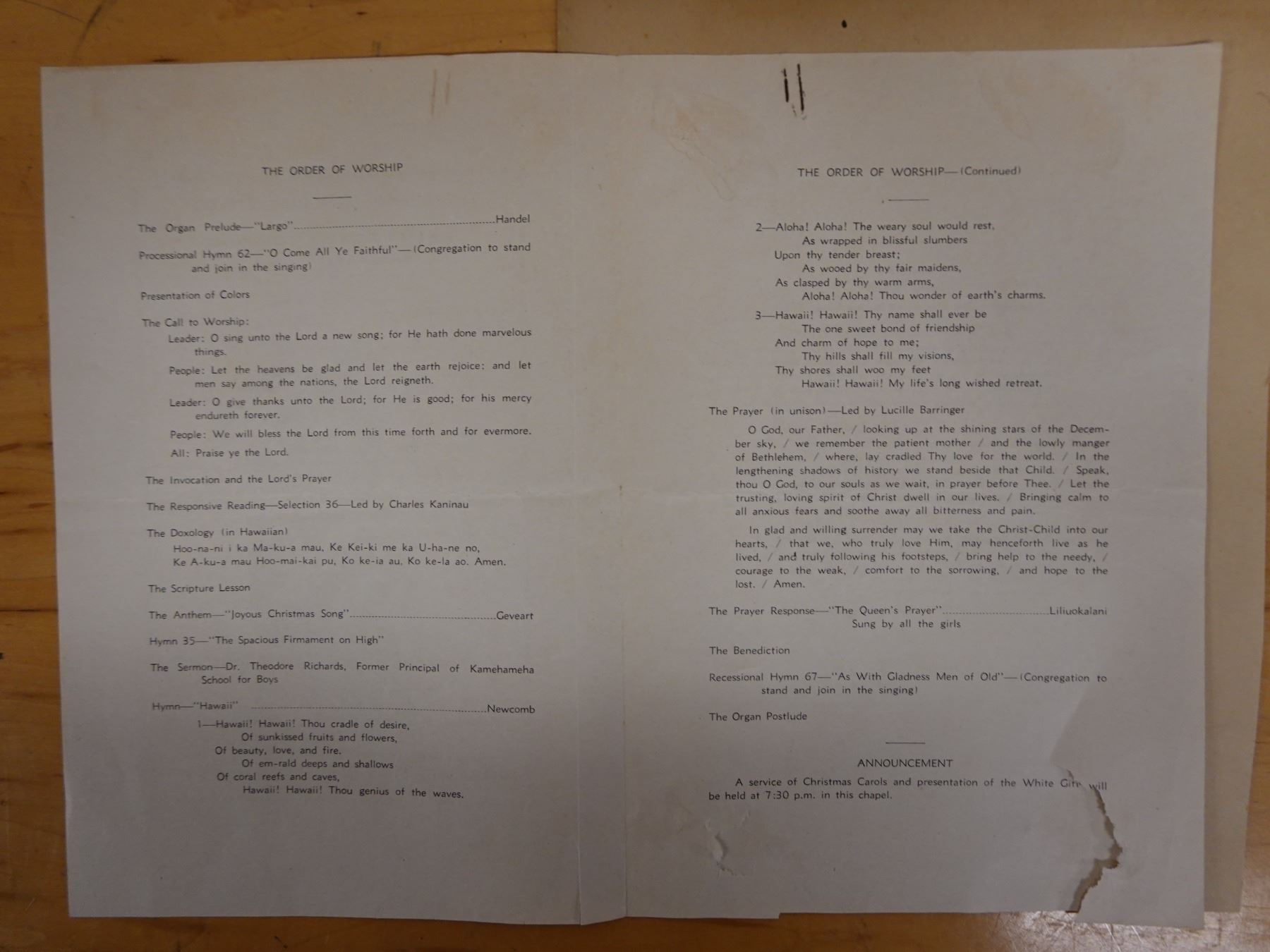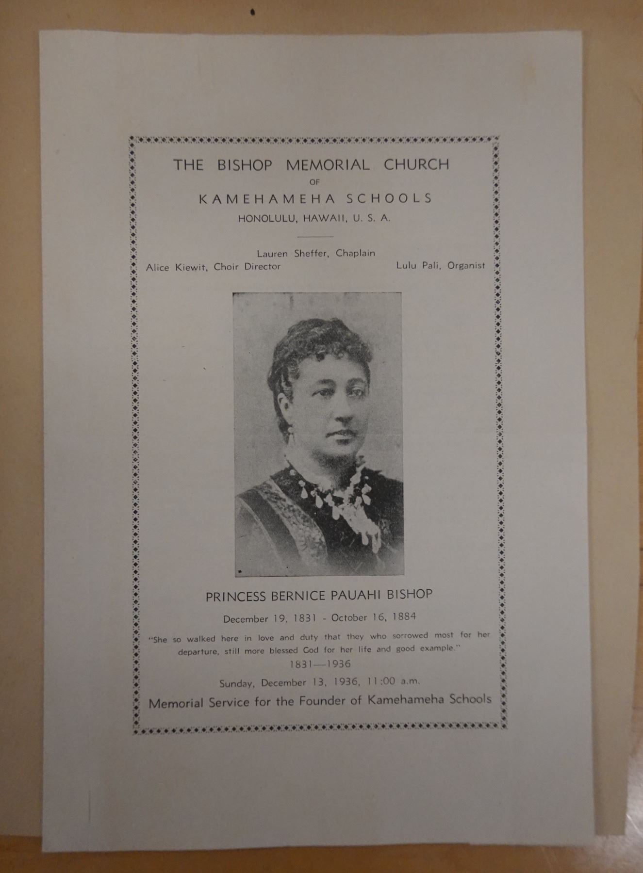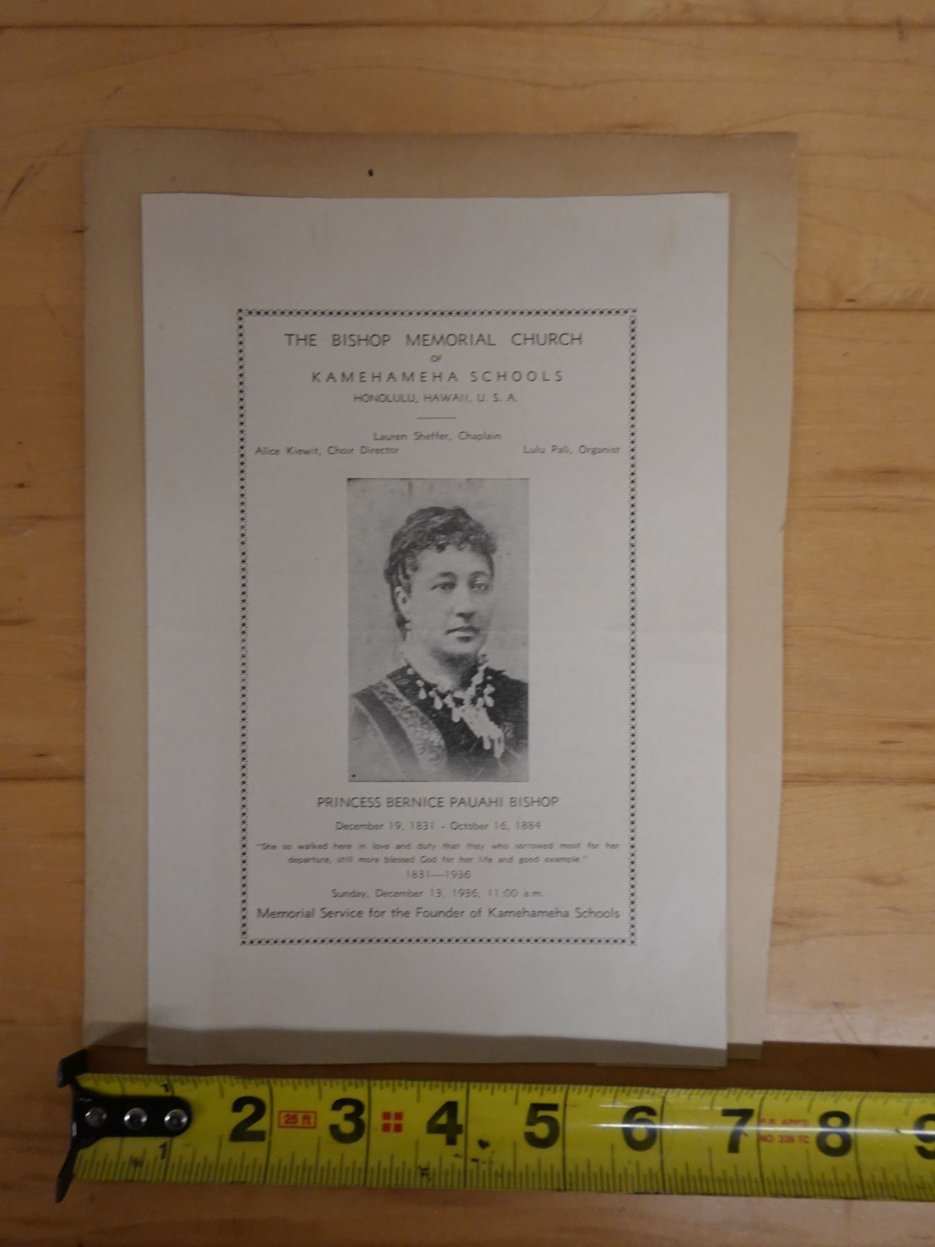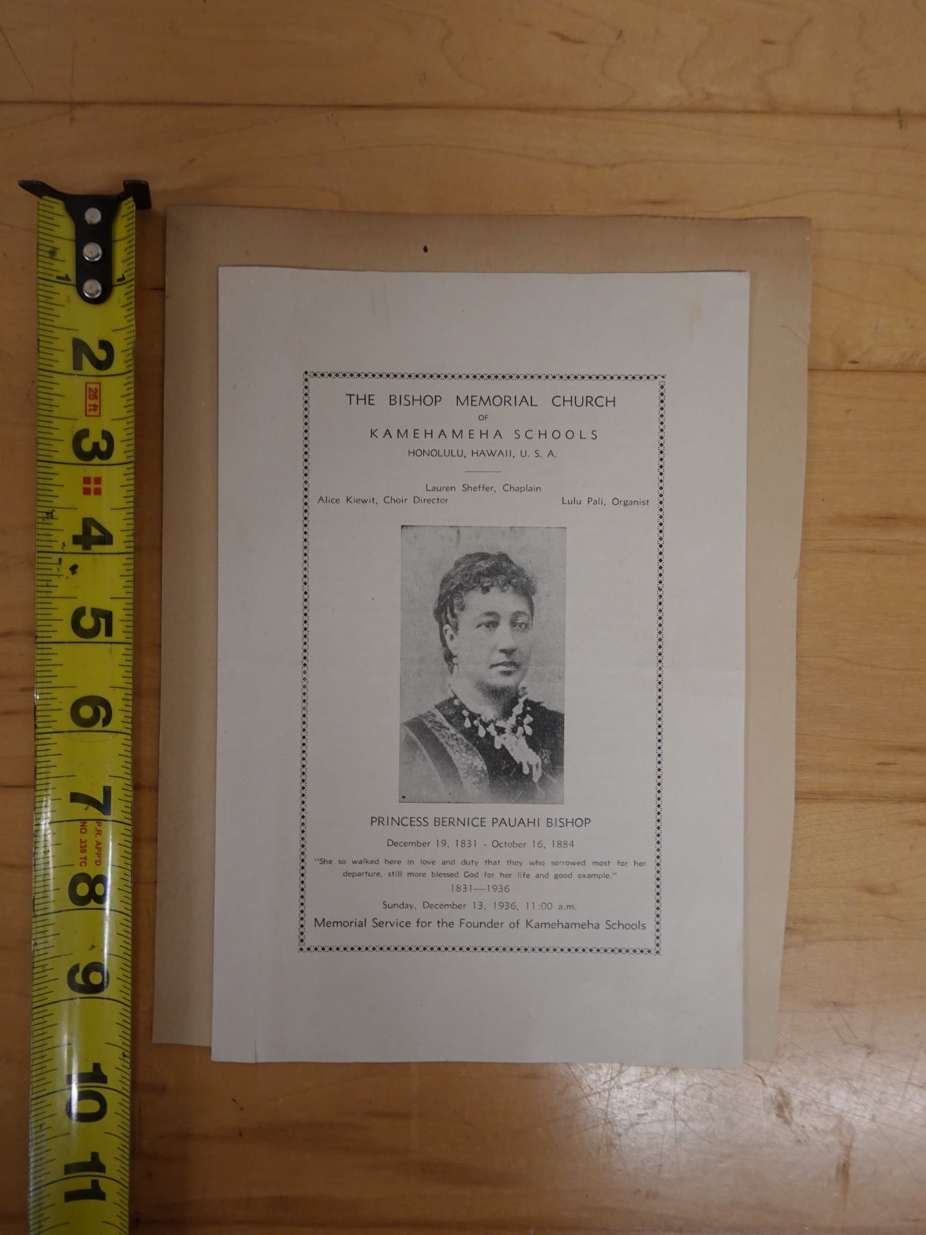 Bishop Church Memorial Service for Princess Bernice Pauahi Bishop 1936, 7" x 10"