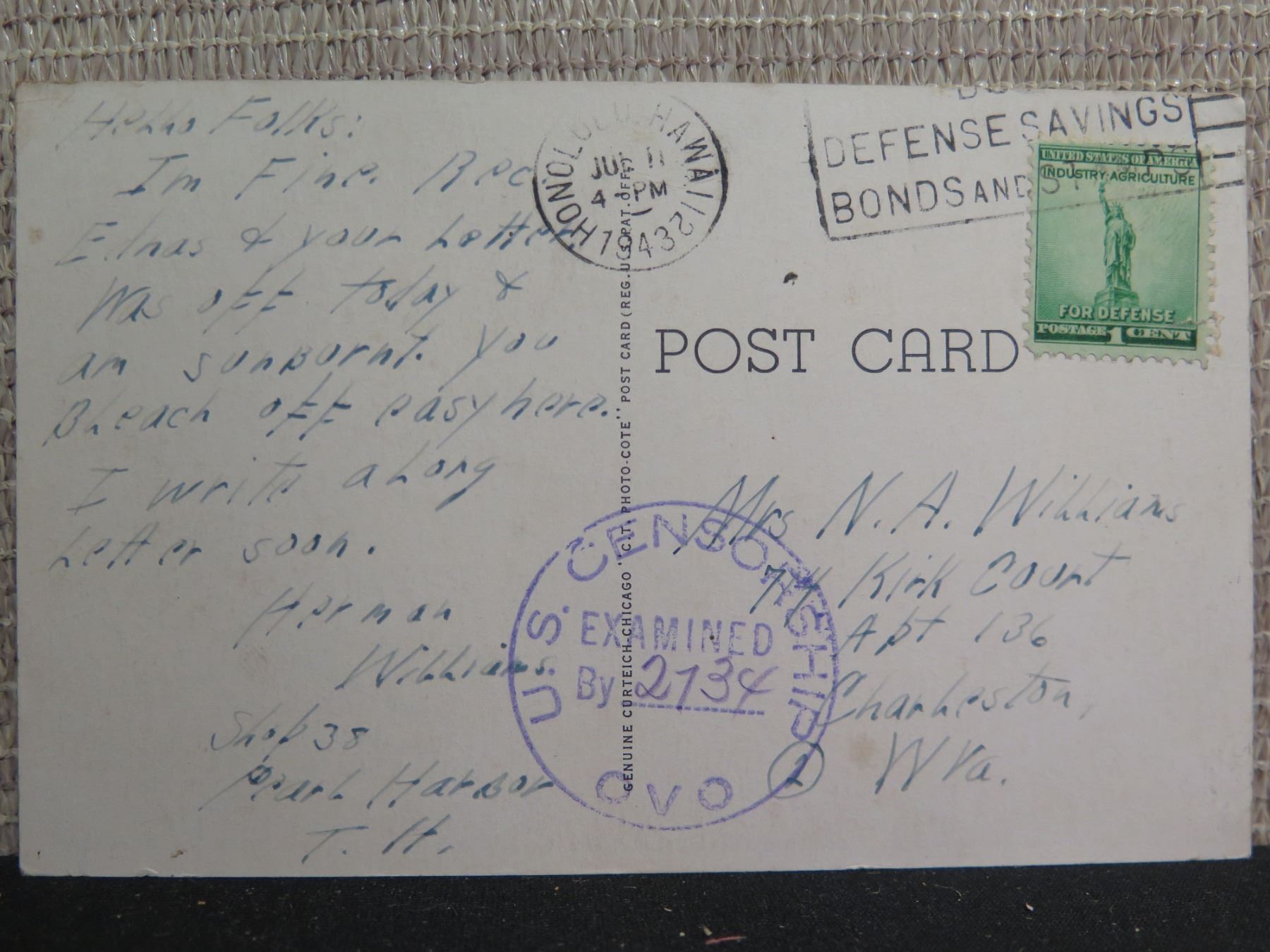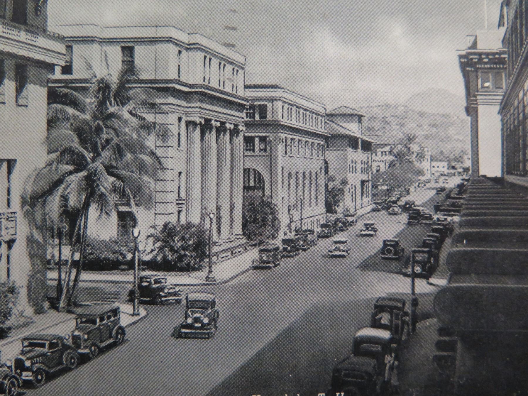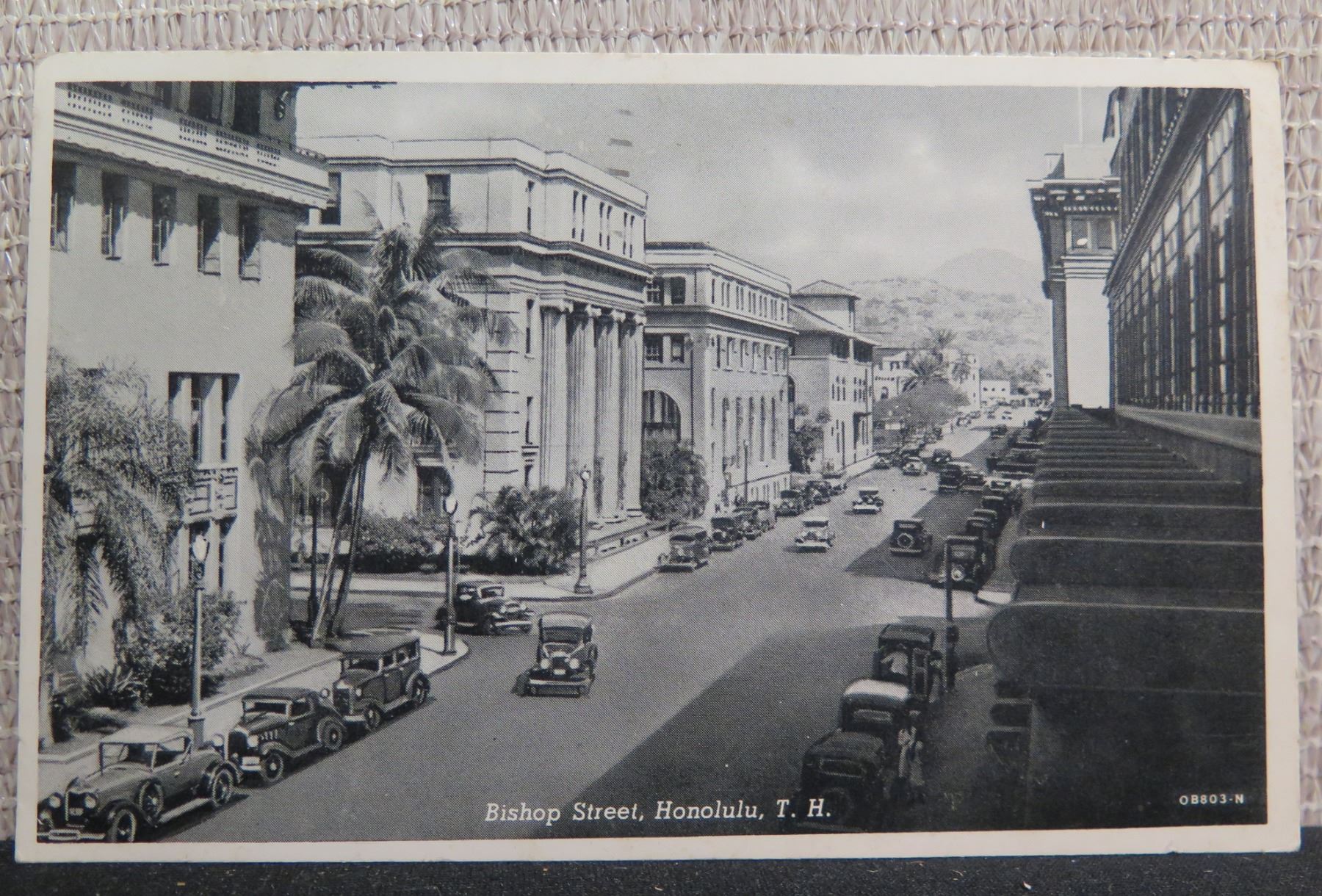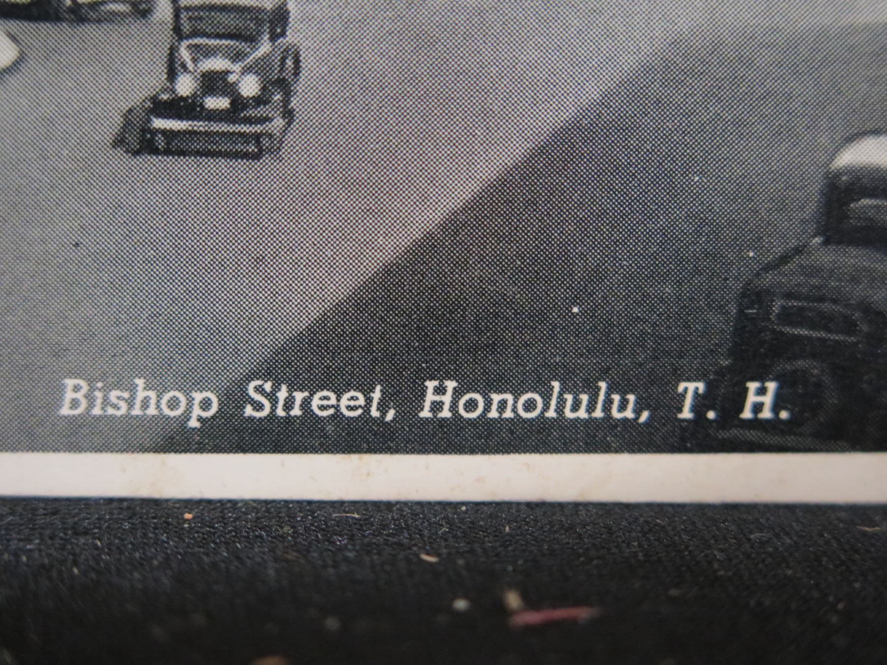 Bishop Street, Honolulu, T.H. Postcard w/ Message & Stamped by Post Office Approx. 1943