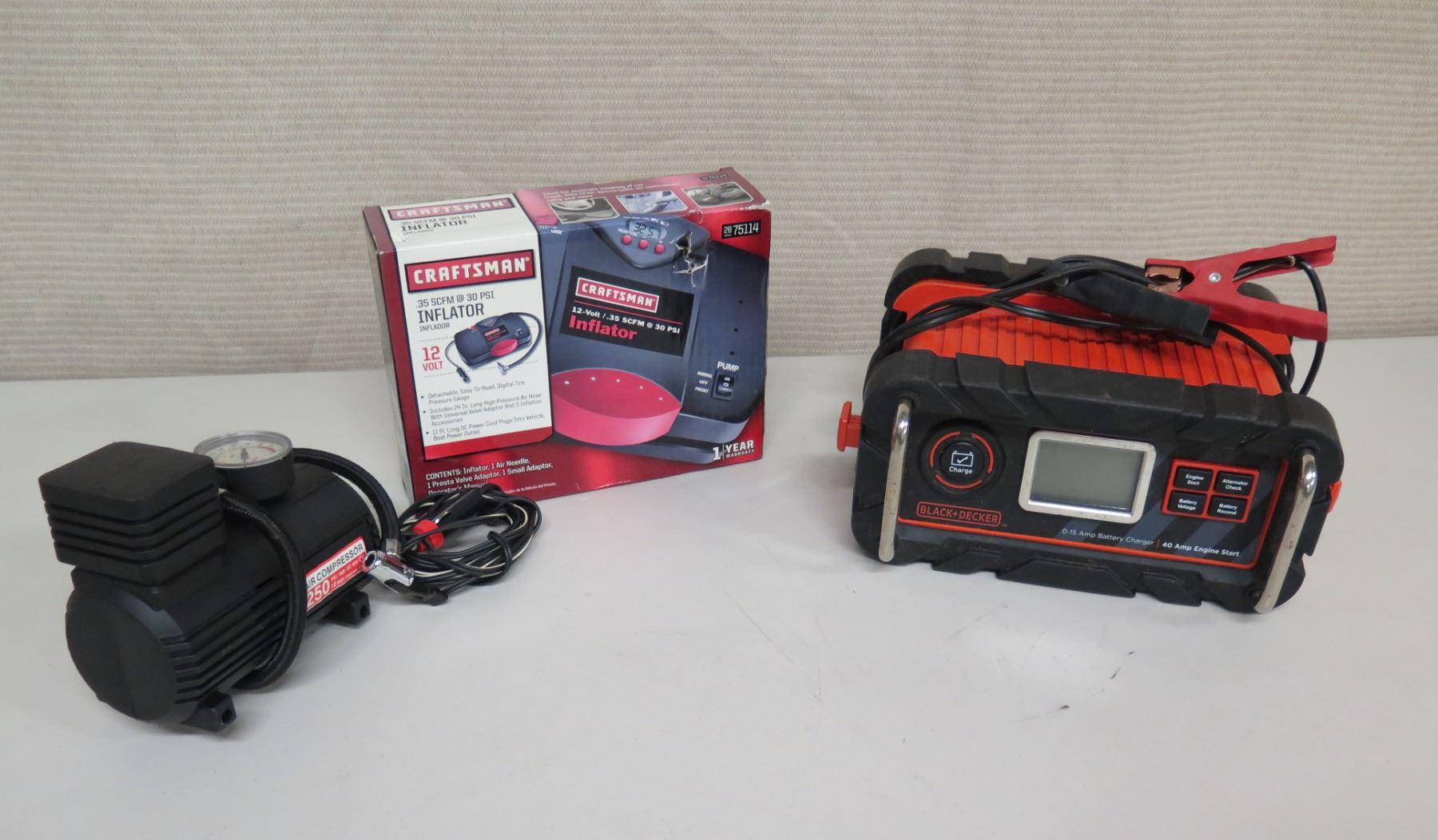Black & Decker .15 Amp Batter Charger, Craftsman Inflator & 250 PSI Compressor