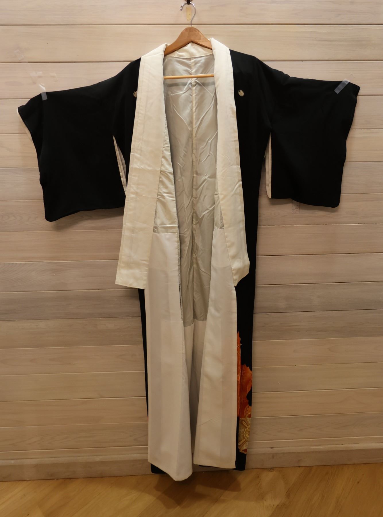Black Japanese Kimono w/ Floral Design & Tag Marked 1330 - 99 Women's One Size