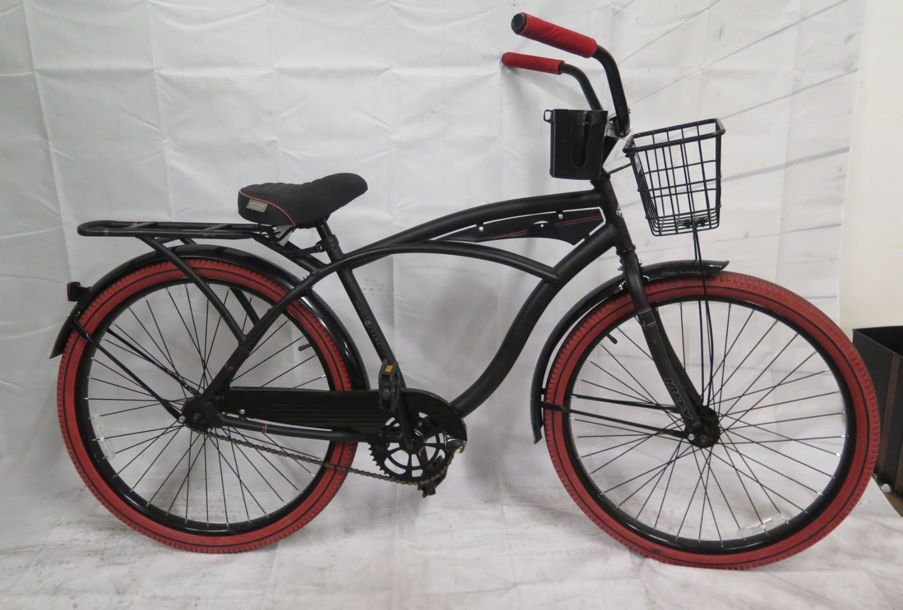 Black Men's Beach Cruiser Bike w/ Coaster Brakes, Basket & Back Rack