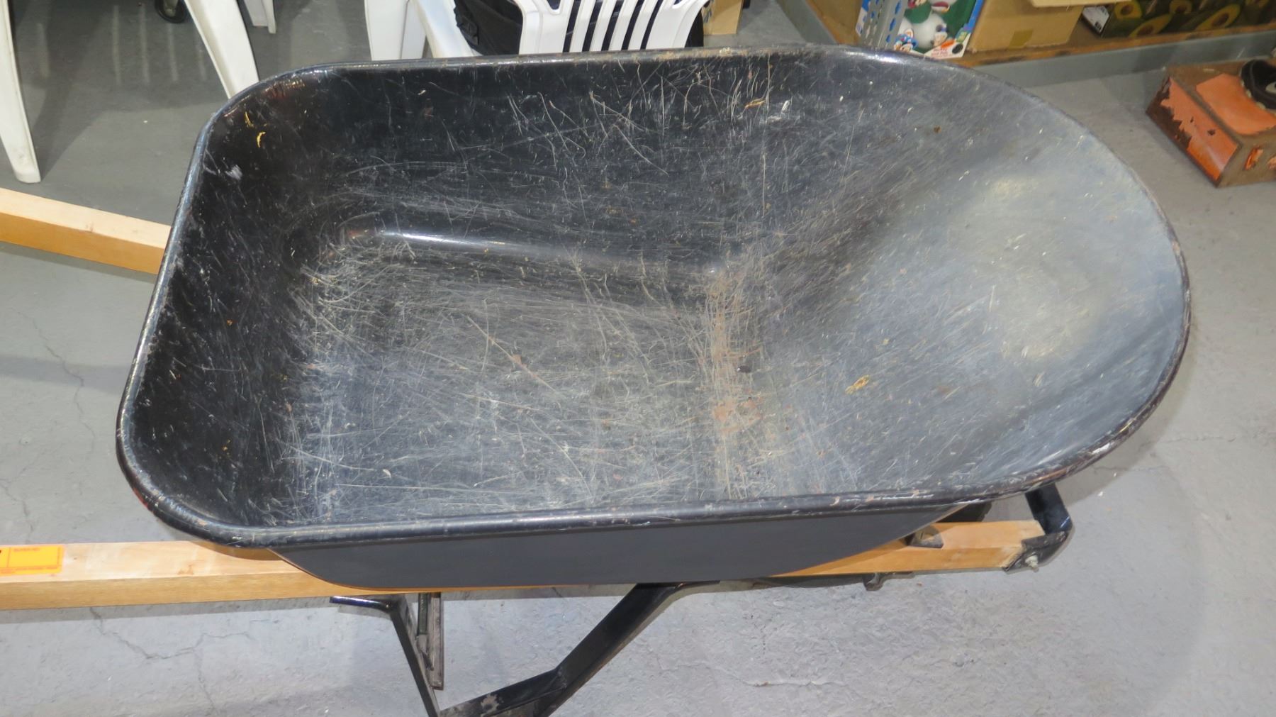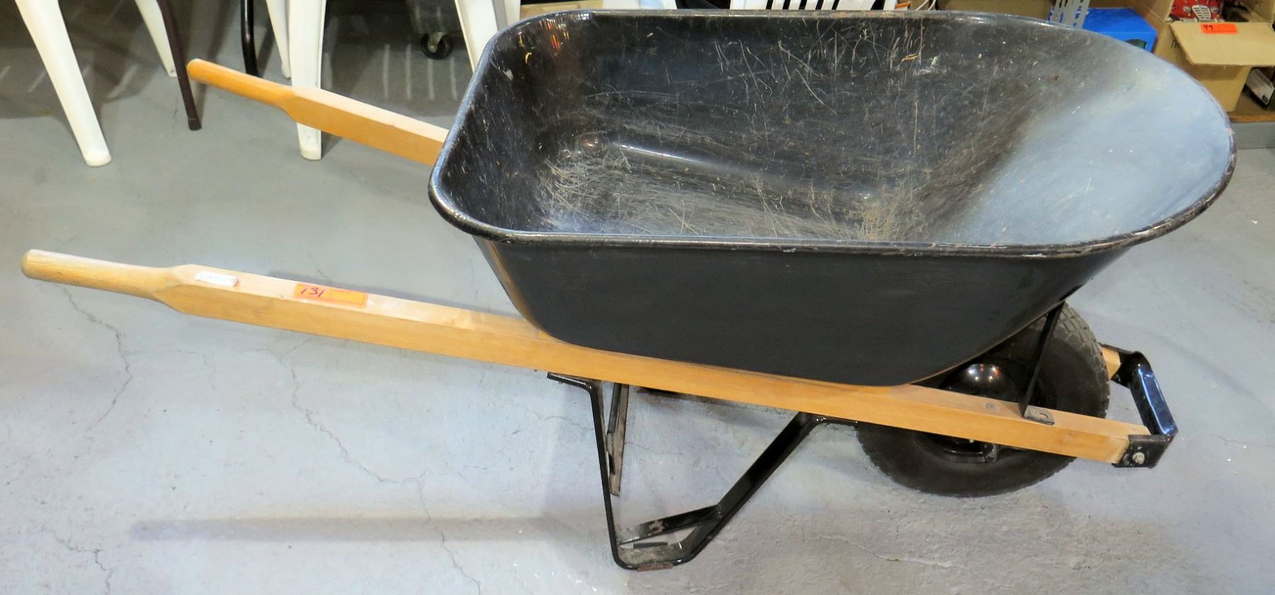Black Metal Wheelbarrow w/ Wood Handles