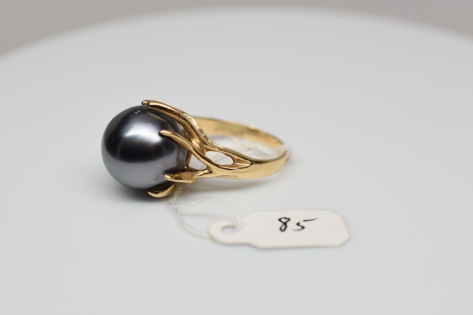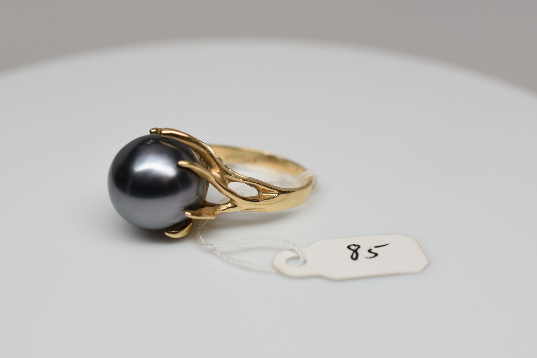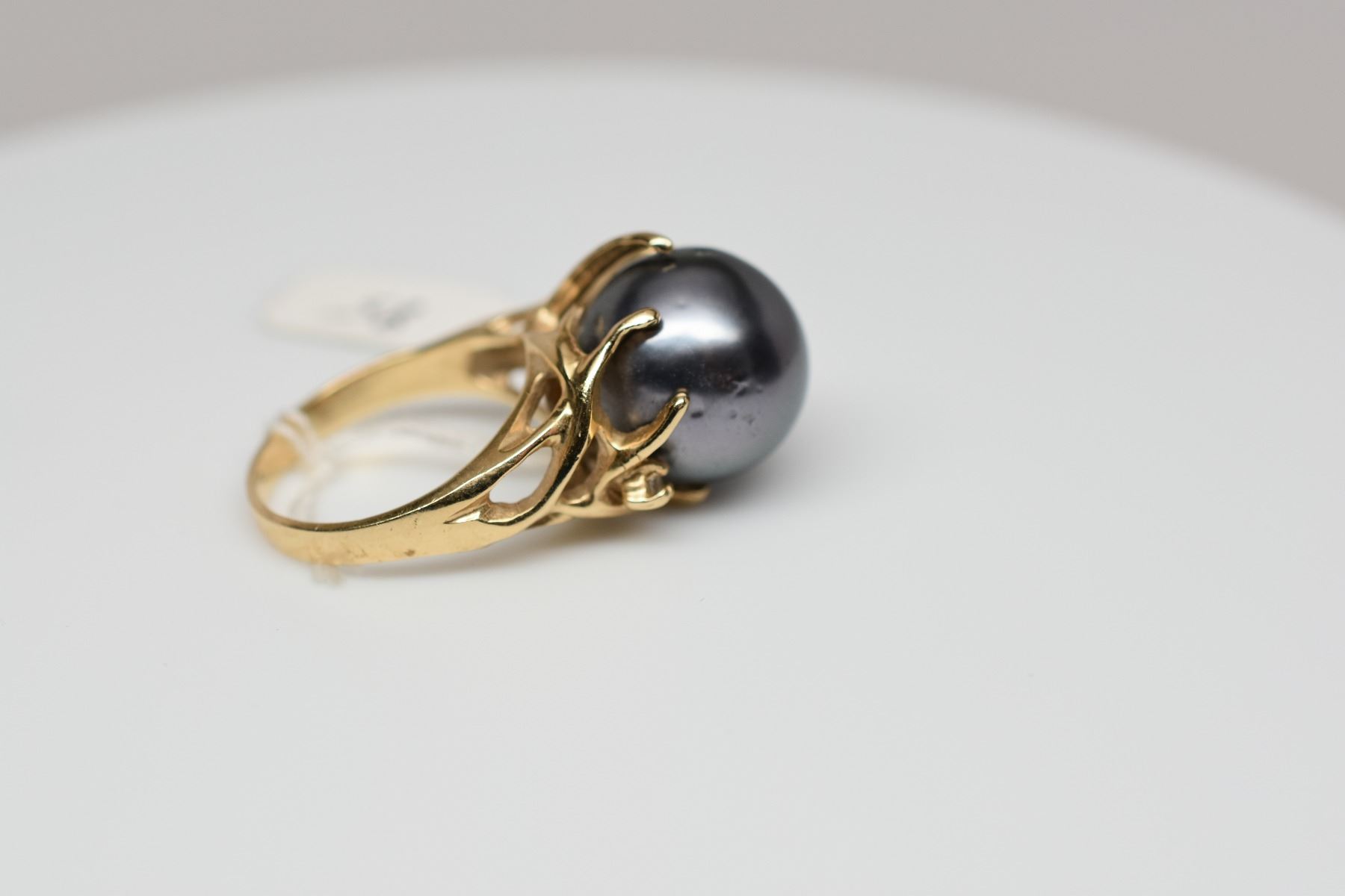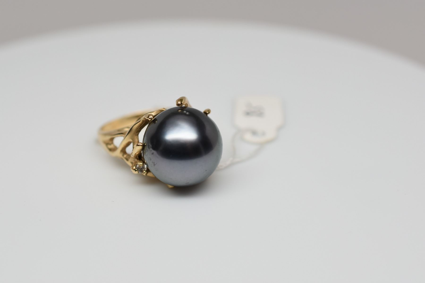 Black Tahitian Pearl & Diamond Ring - 14mm Cultured Pearl, 1 Round Diamond Approx .03 ct, 14K Yellow Gold 8.7 grams