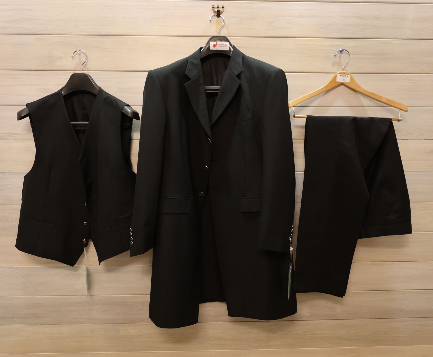 Black Tuxedo w/ Jacket, Vest & Pants, MRS8 Size ABLL (chest 115cm, waist 93cm)
