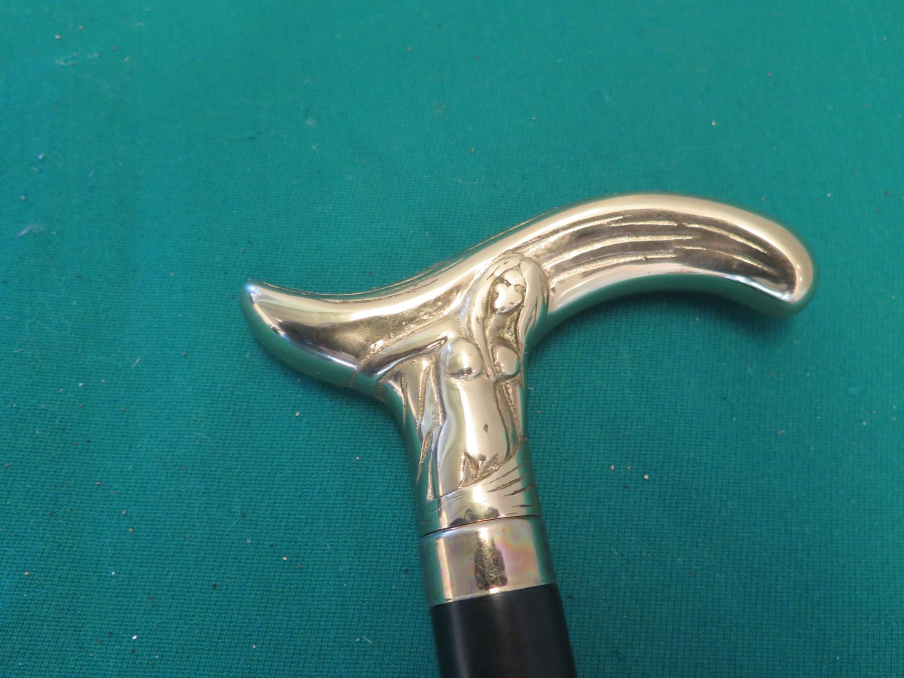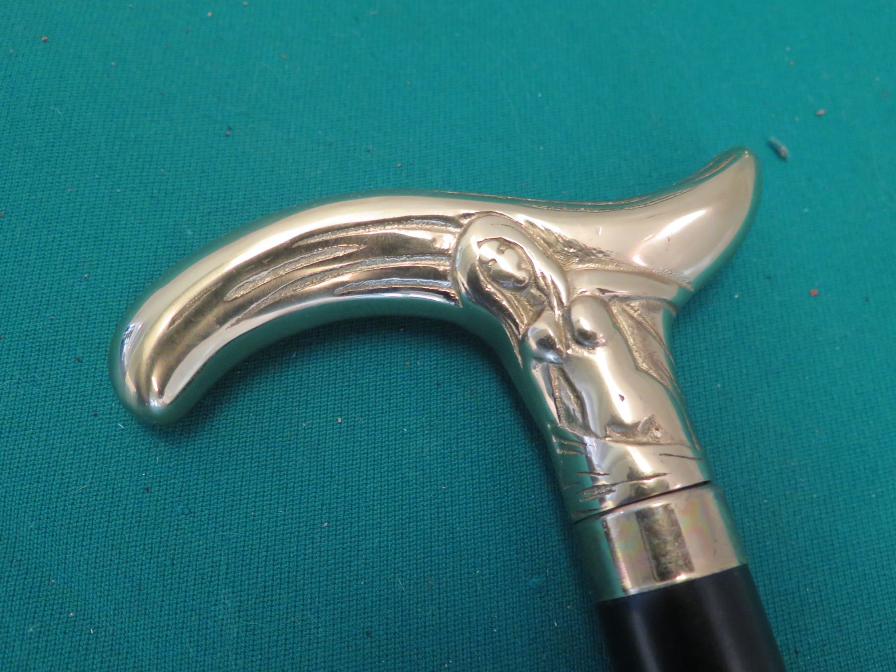 Black Walking Stick Cane w/ Carved Metal Handle 36"L