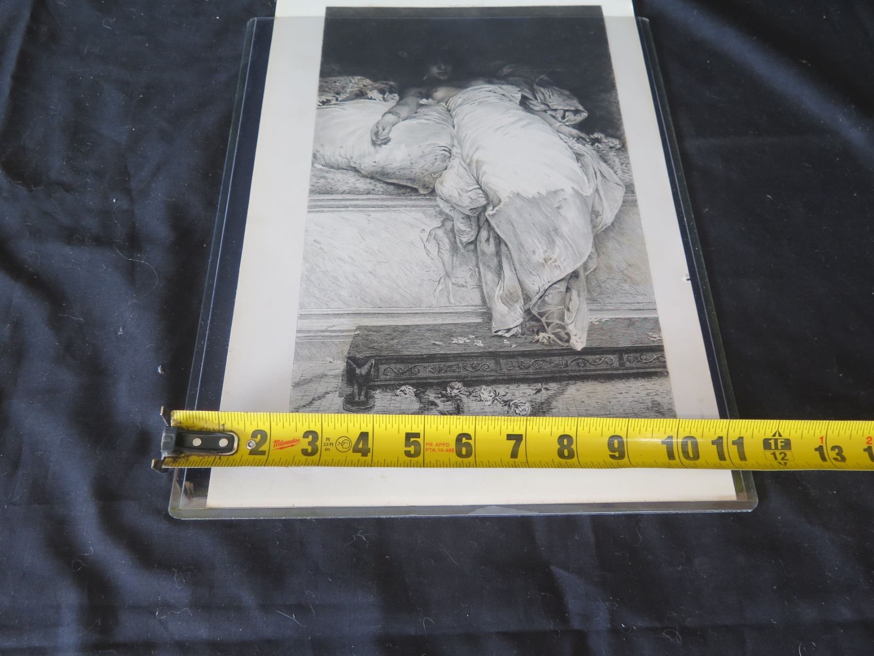 Black & White Nude Female in Bed, Signed & Stamped, Copyrighted 1894, 11"x15"