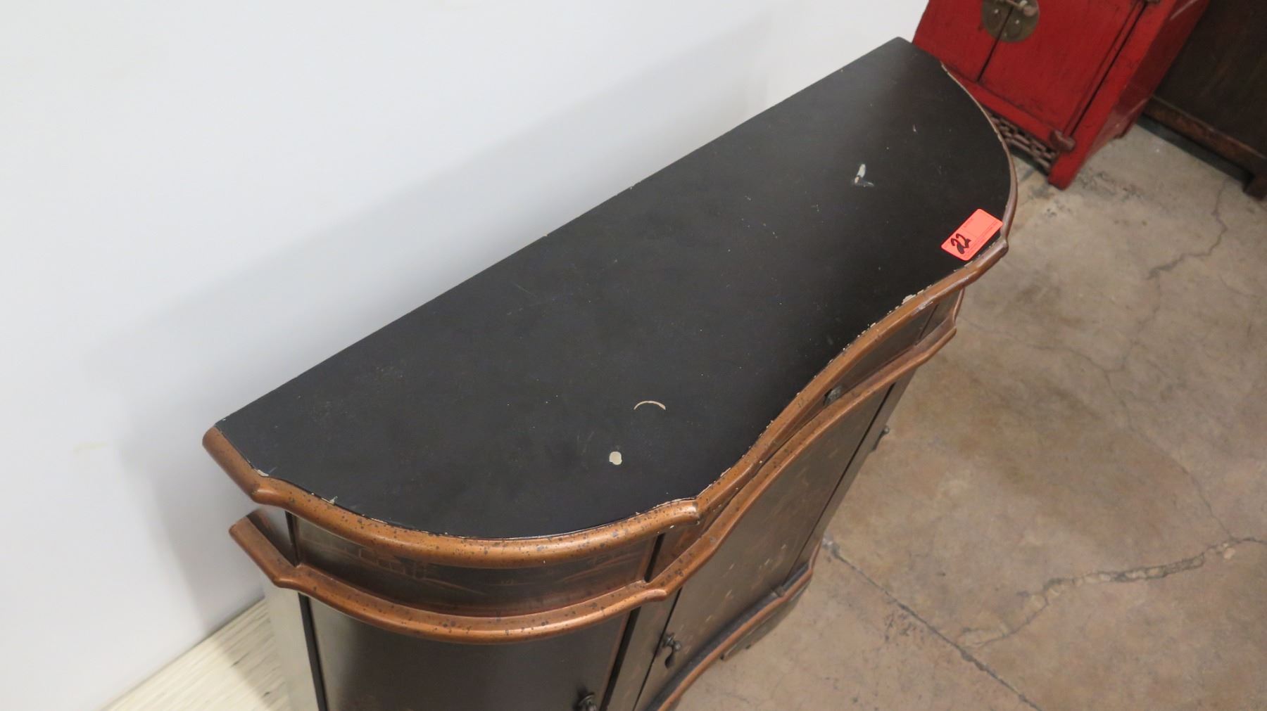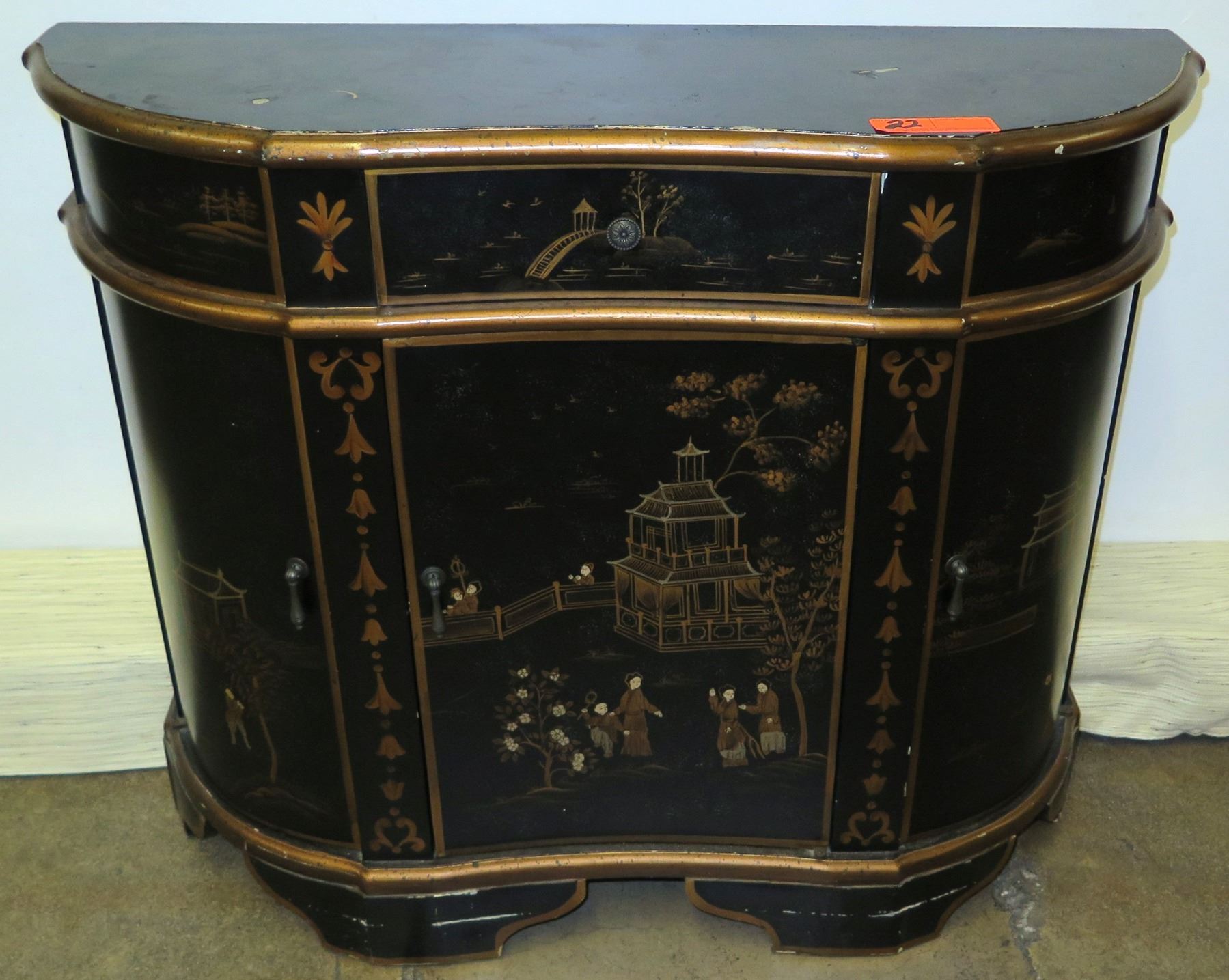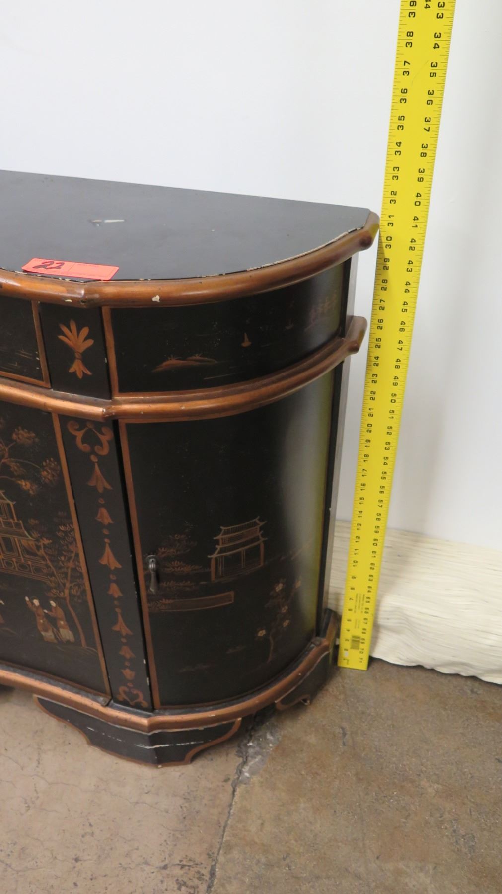 Black Wooden Curved Sideboard Buffet / Gold Pagoda & 4 Doors 1 Drawer 31" High