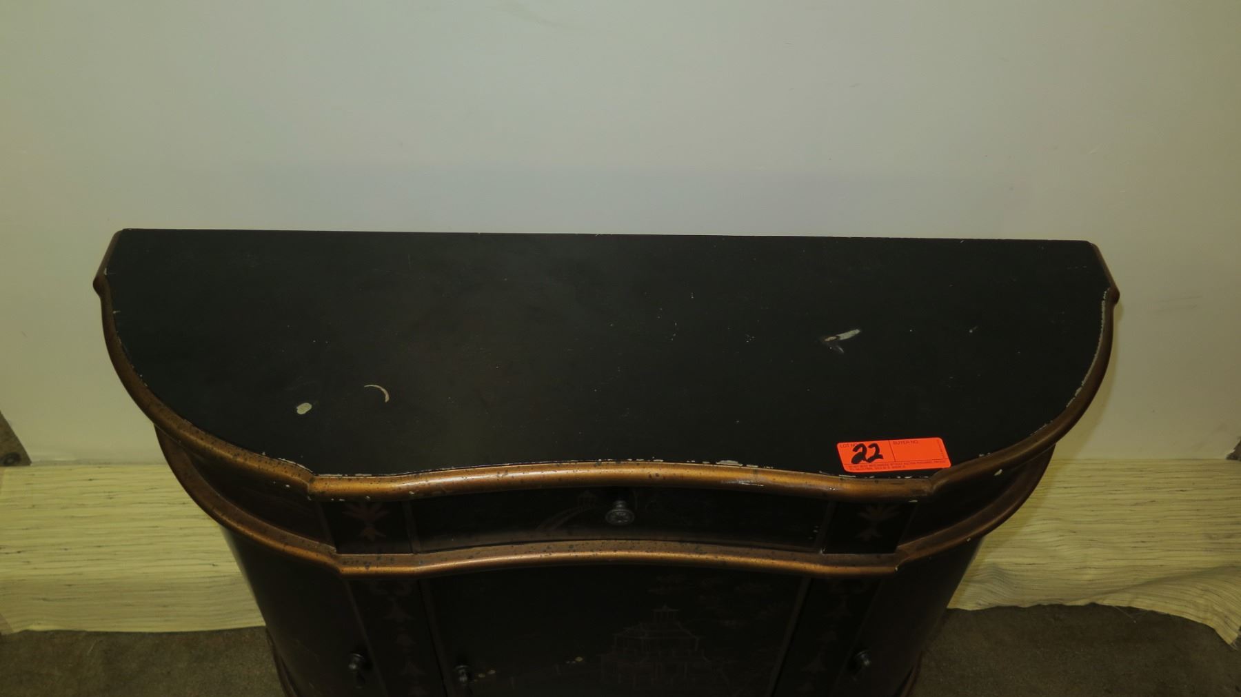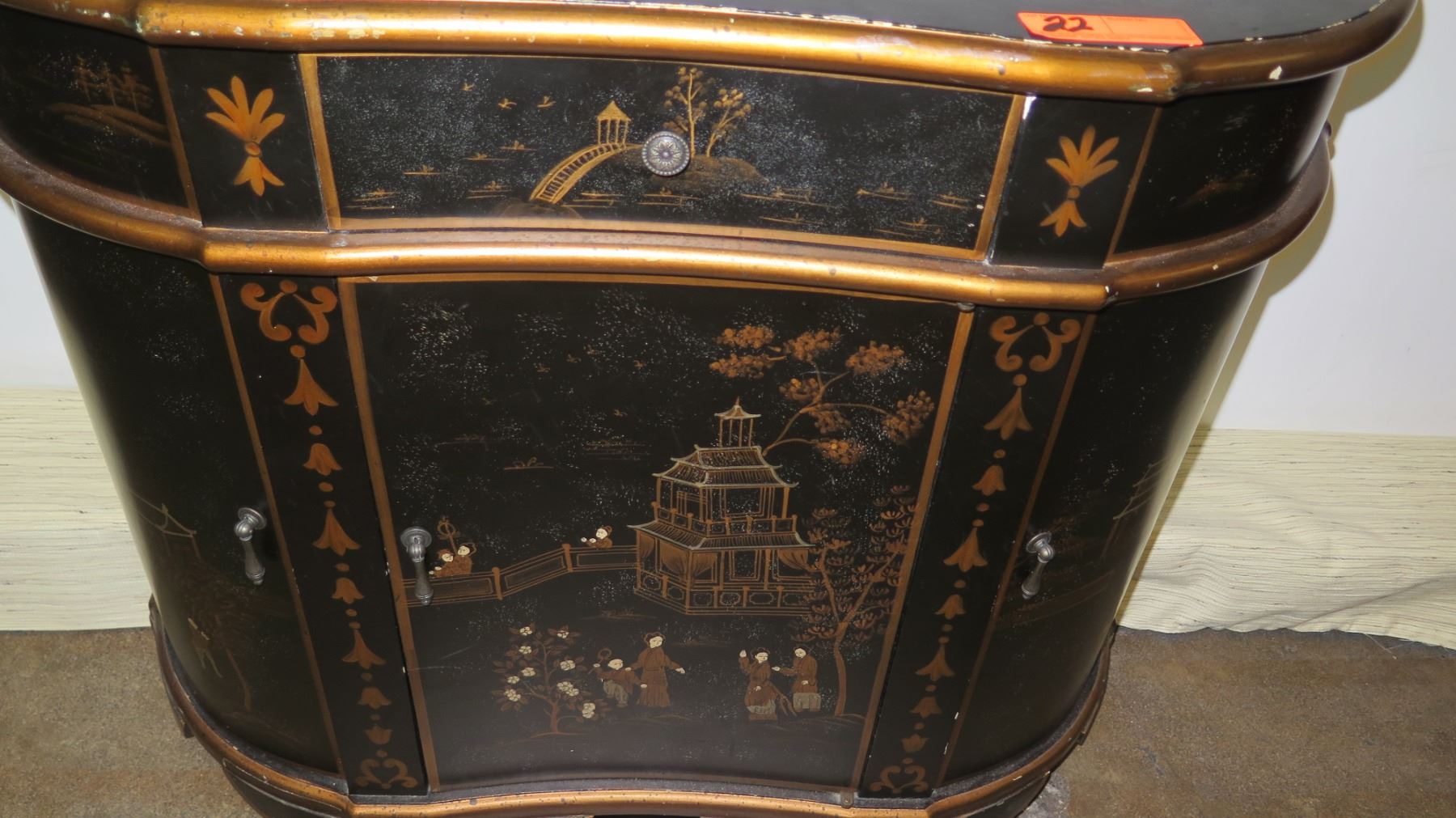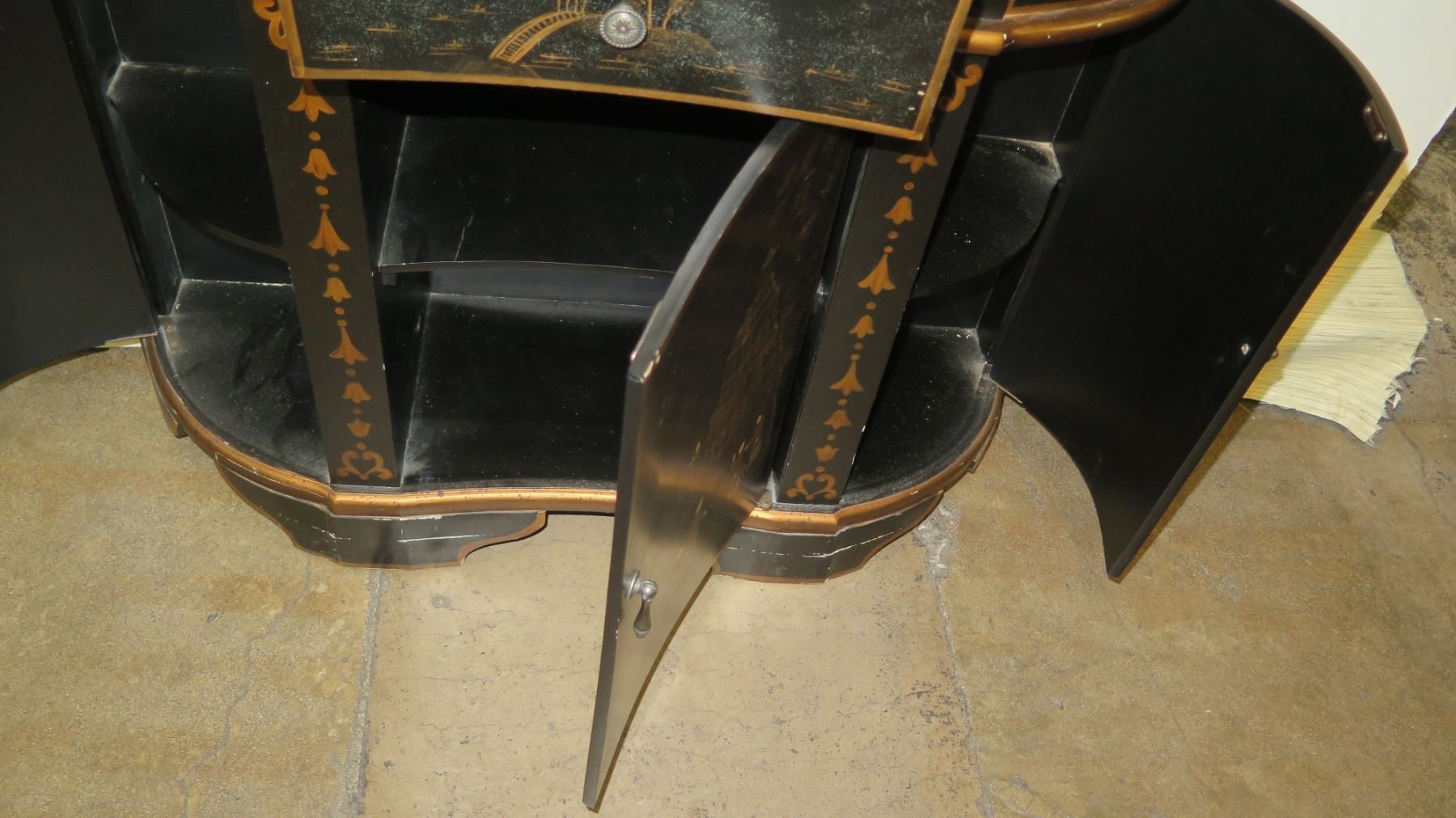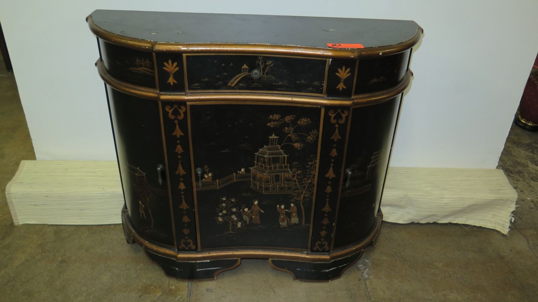 Black Wooden Curved Sideboard Buffet / Gold Pagoda & 4 Doors 1 Drawer 31" High