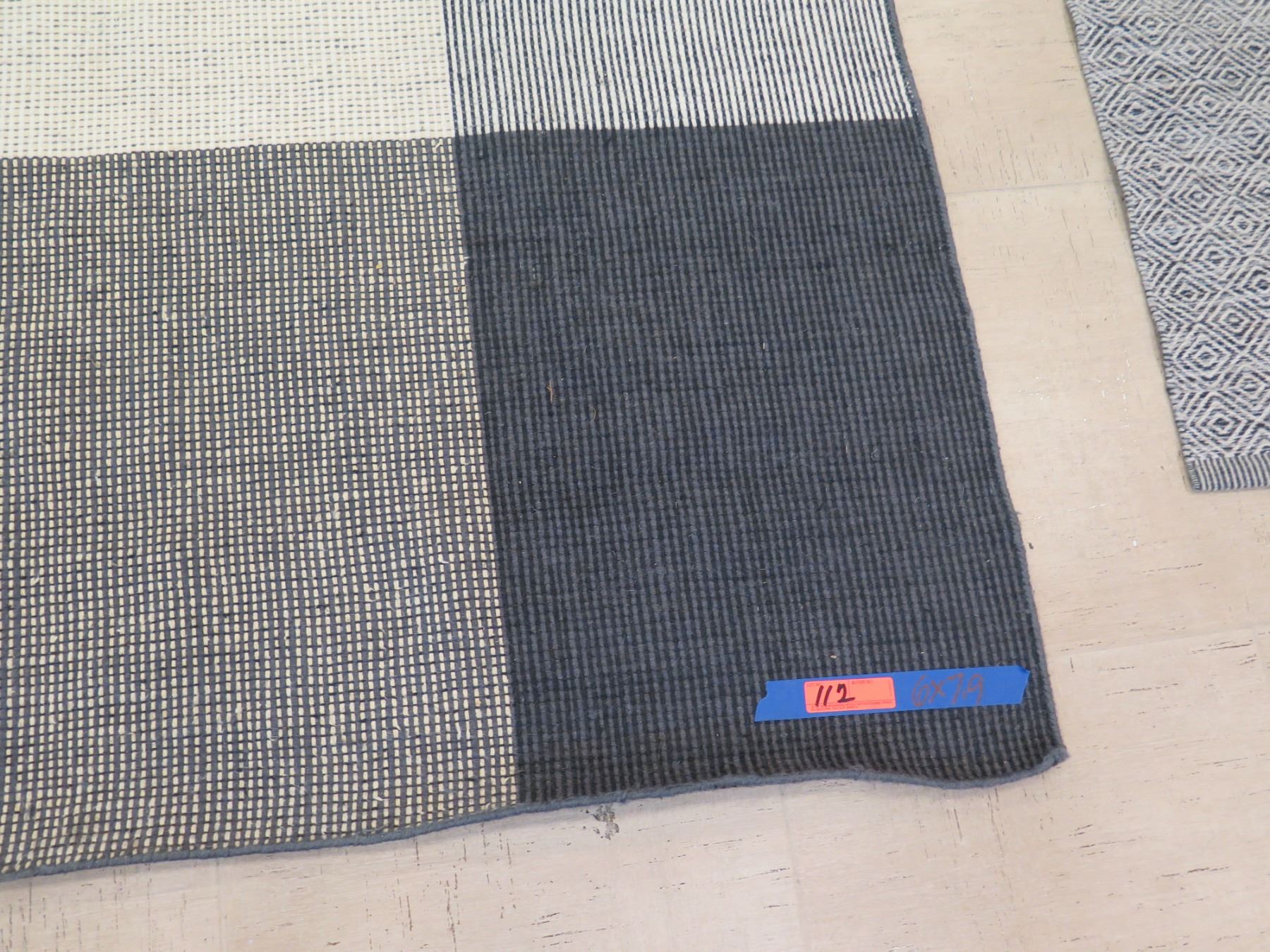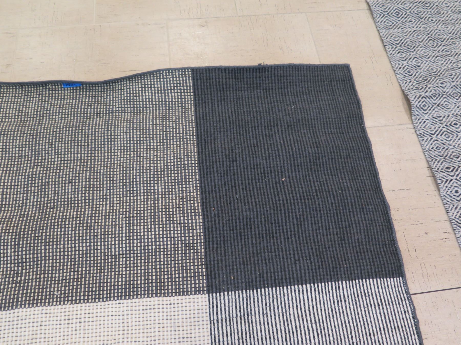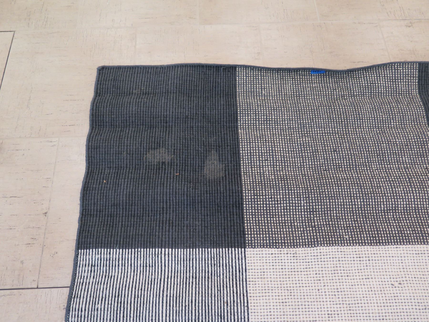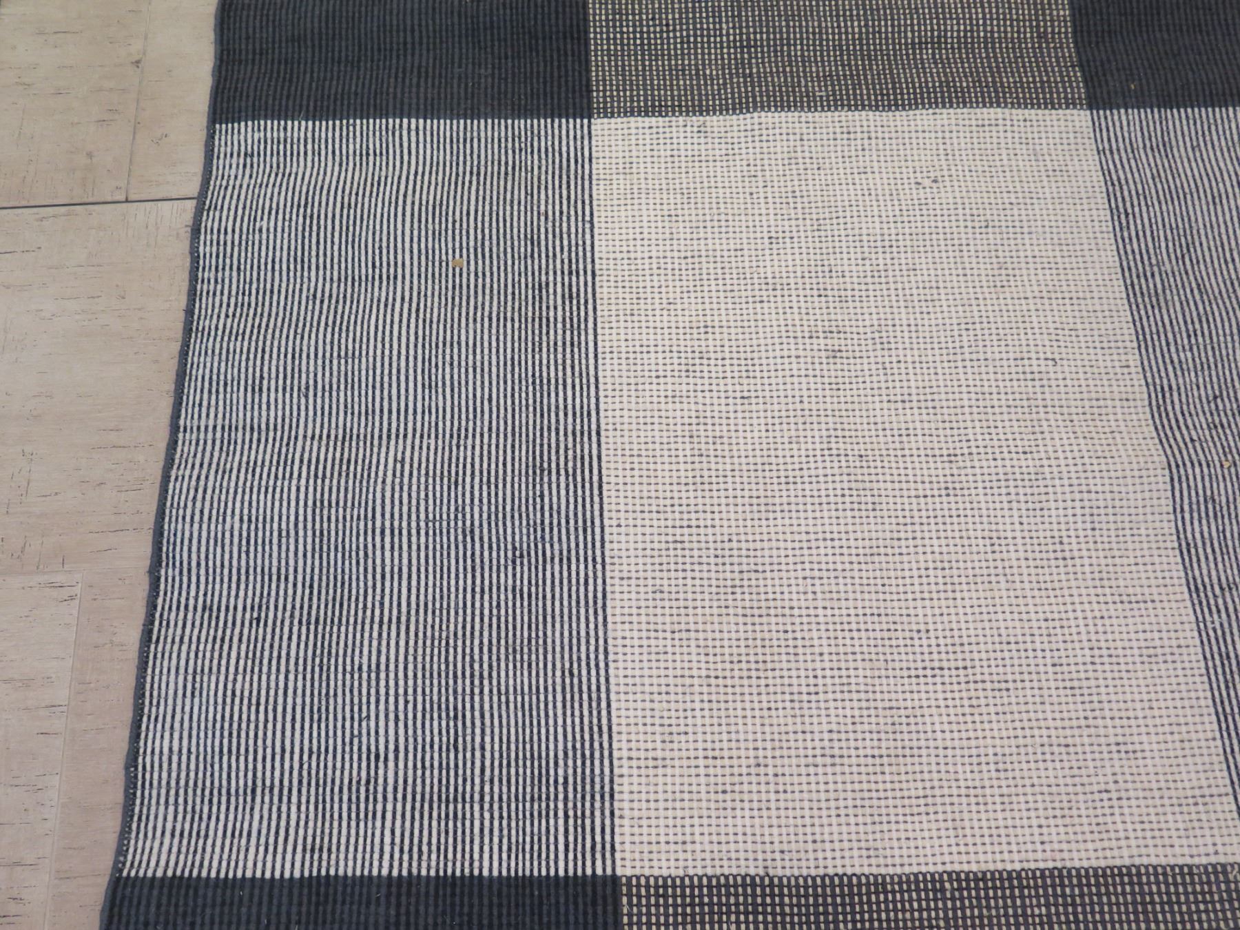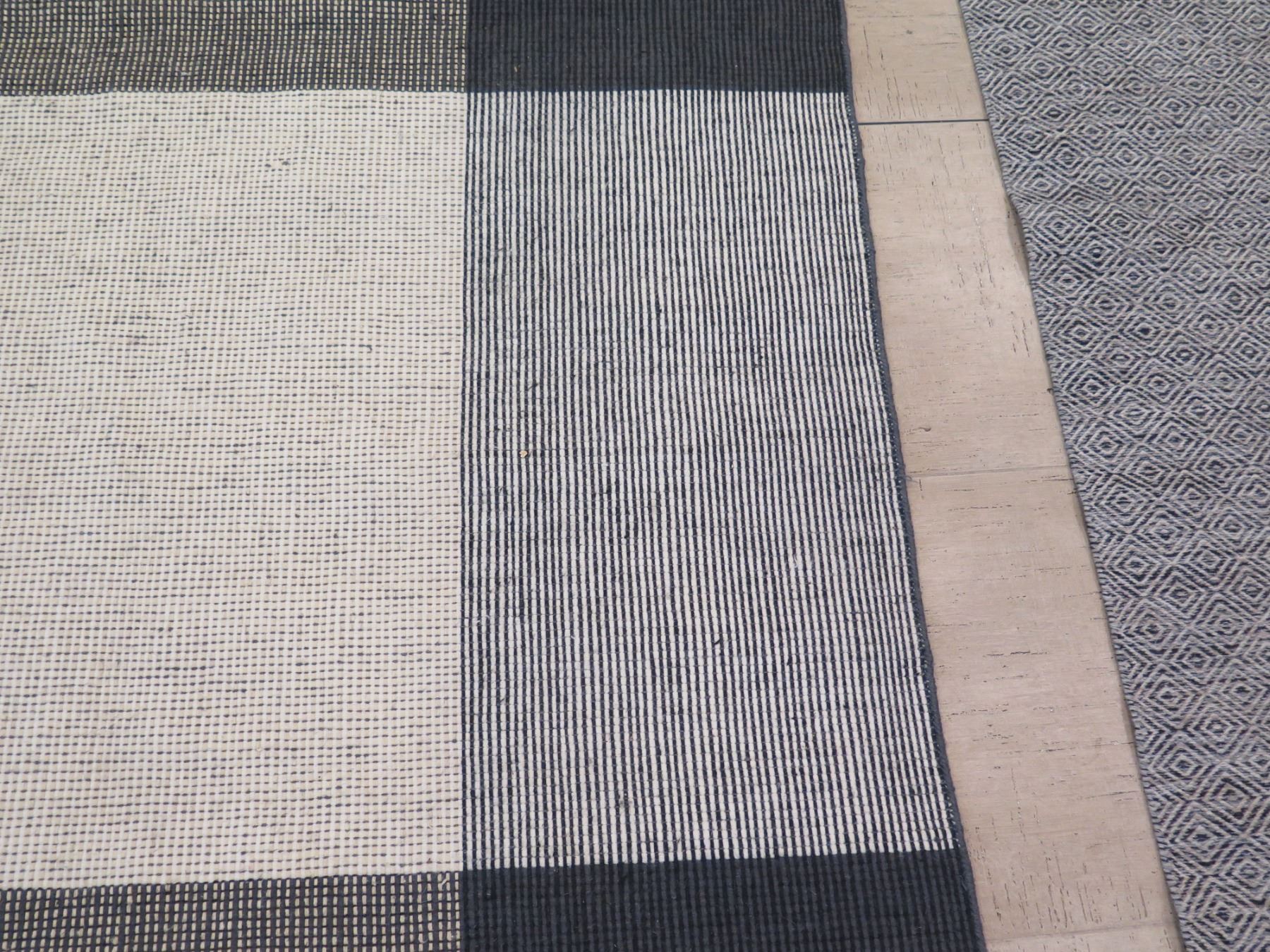 Black and White Geometric Area Rug 7'9" x 6'. Has dirt marks or stains in one corner.