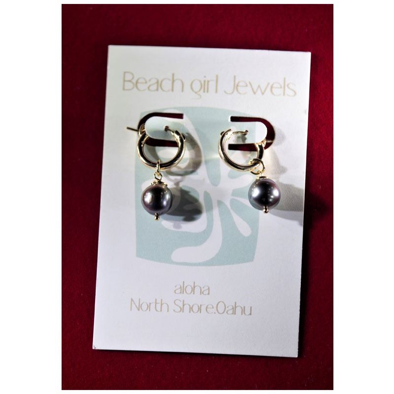 Tahitian Pearl Earrings Set with Gold Fill Huggie Hoops from Beach Girls Jewels, Turquoise and Freshwater Pearls bracelet & earrings from Seyana Jewelry, Tahitian black pearl and amethyst necklace from The Black Pearl Source. Donated By: Beach Girl Jewels, Seyana Jewelry and Black Pearl Source