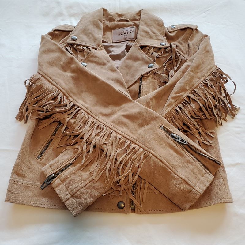 (1) Small Tan Fringe Suede Jacket