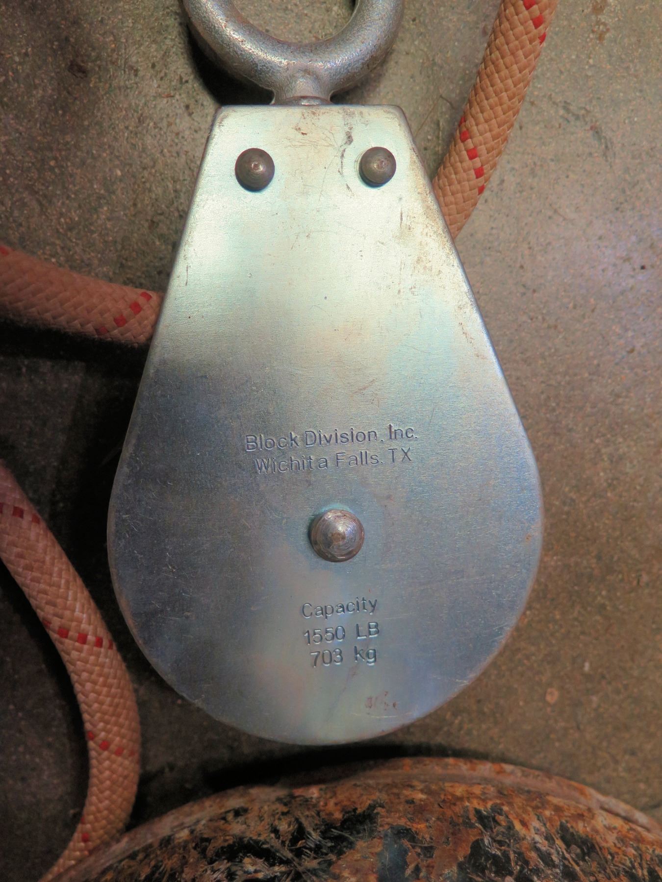 Block Division Inc Pulley w/ Wire Rope Capacity 1550 lbs, Shackles, Hose, etc