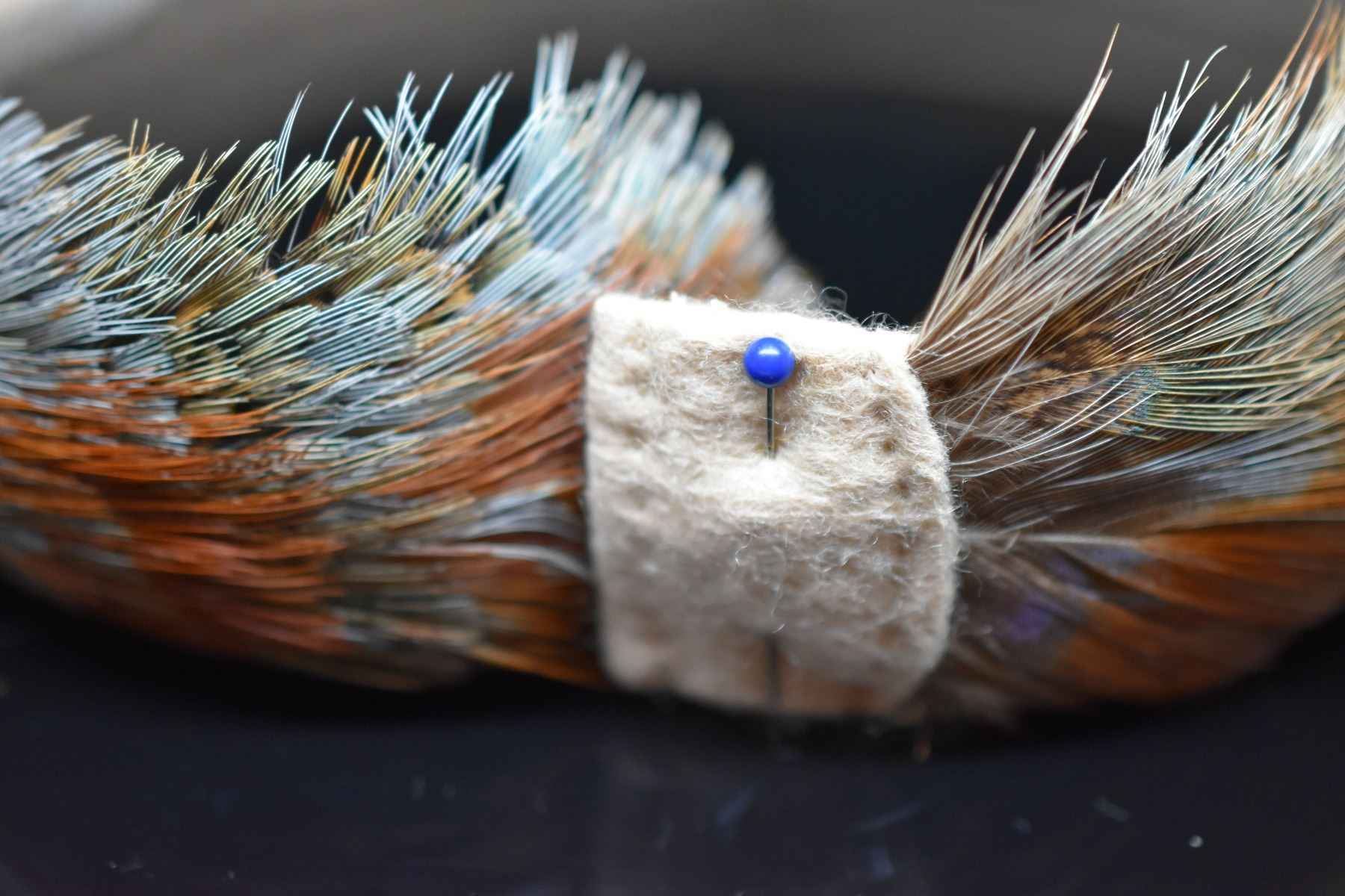 Blue & Brown Feather Hat Band - 2" Width, Good Condition