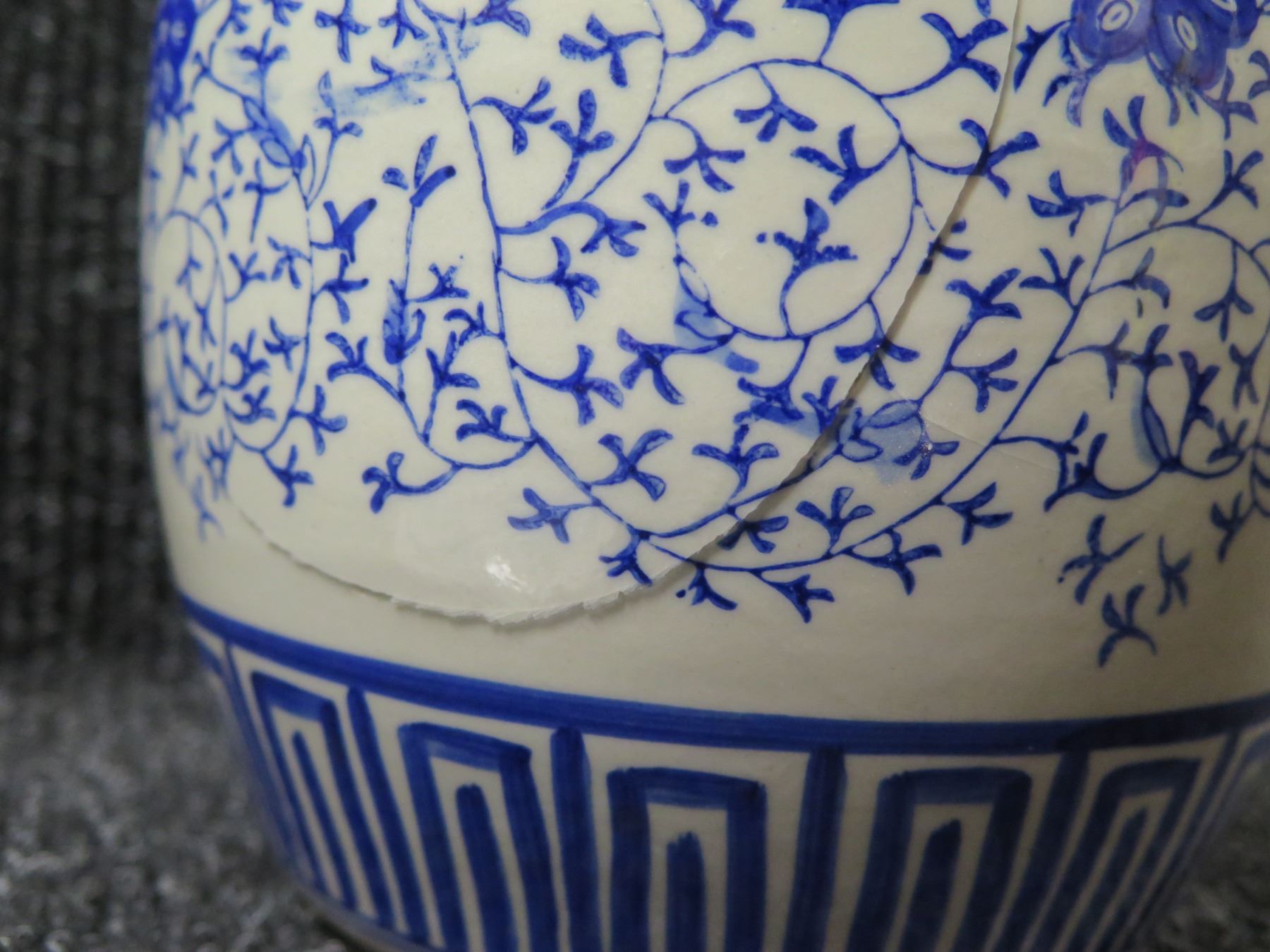 Blue Floral Ginger Jar w/ Lid (cracked) 8"H