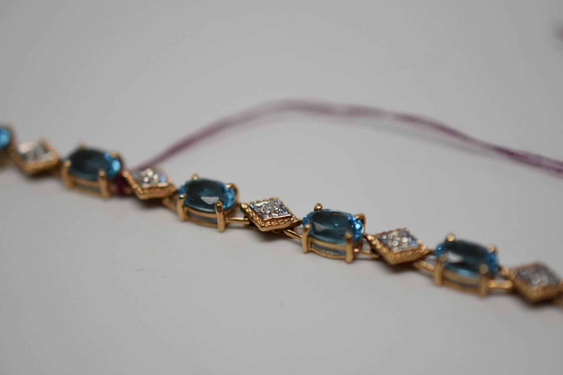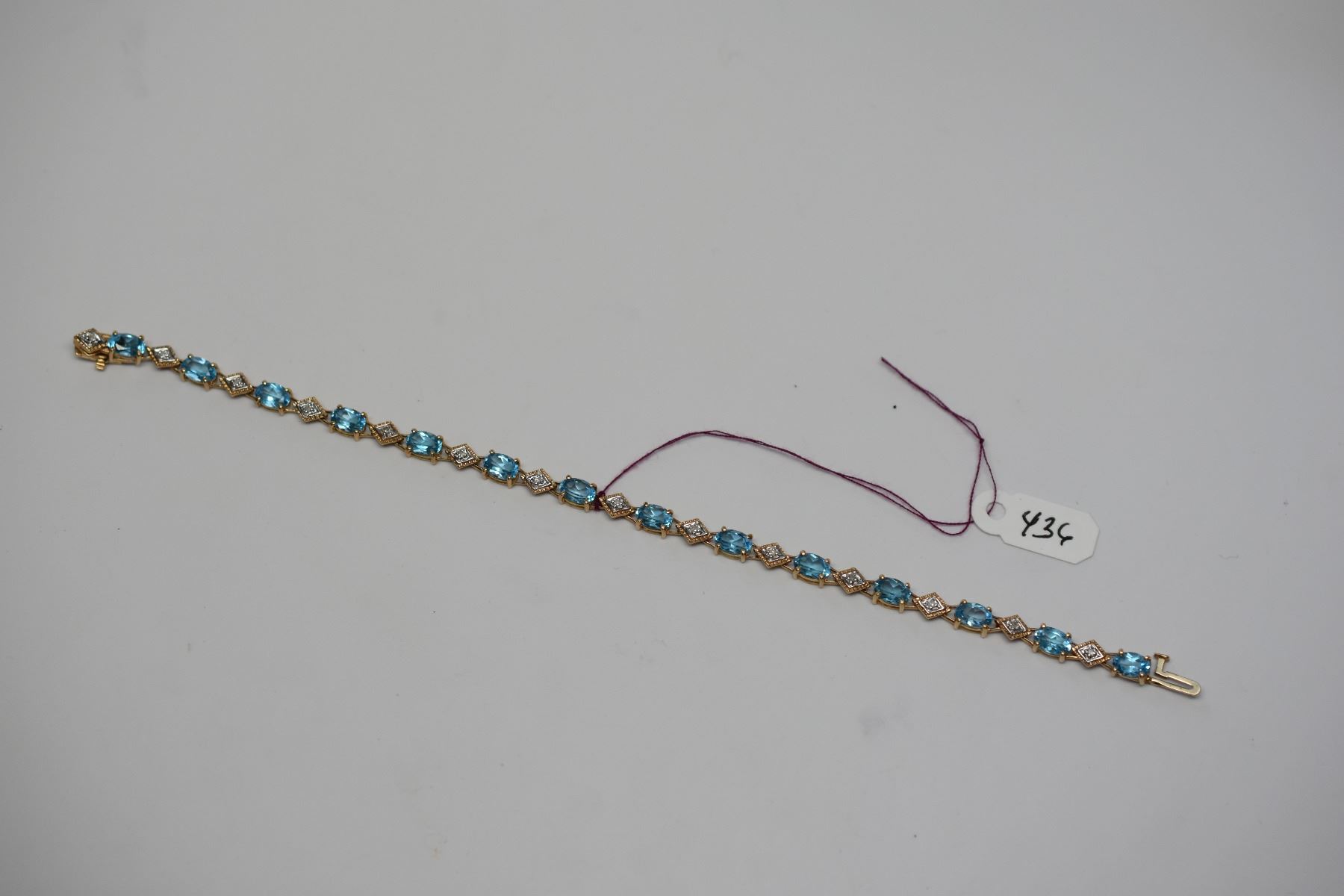 Blue Topaz Link Bracelet - Approx. 7 1/4" Length, Oval Faceted Blue Topaz