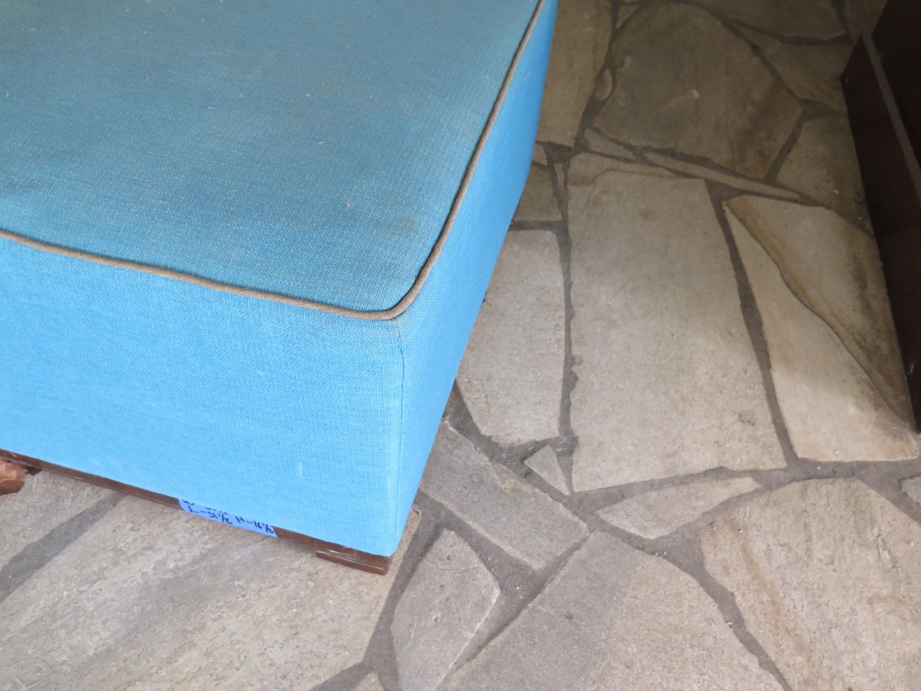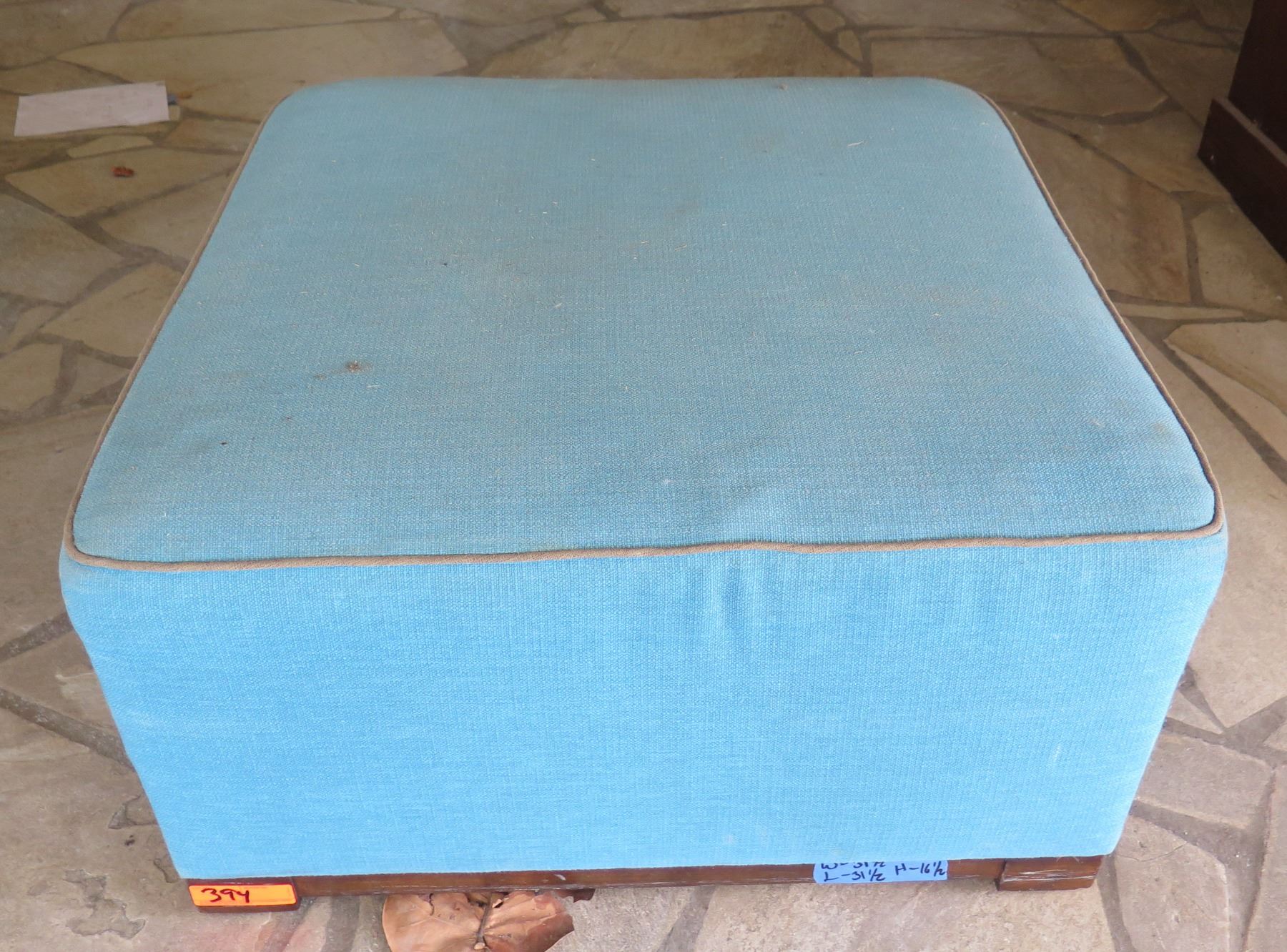 Blue Upholstered Ottoman w/ Wood Base 31.5"x31.5"x16.5"