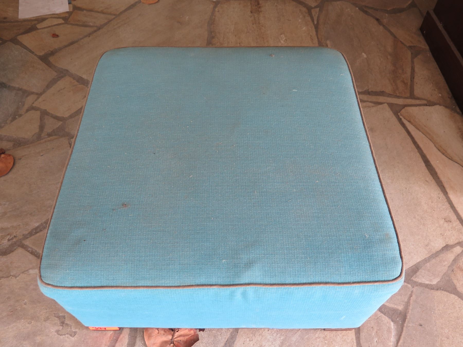 Blue Upholstered Ottoman w/ Wood Base 31.5 x31.5 x16.5