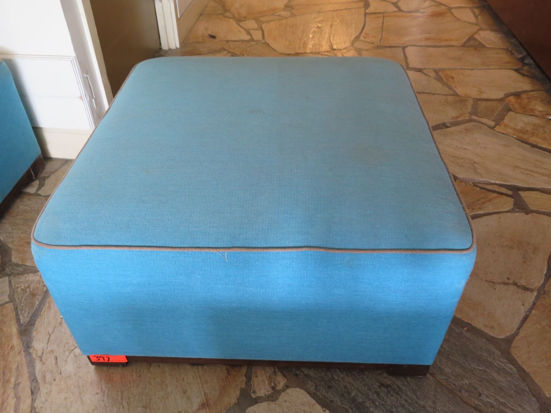 Blue Upholstered Ottoman w/ Wood Base 31.5"x31.5"x16.5"