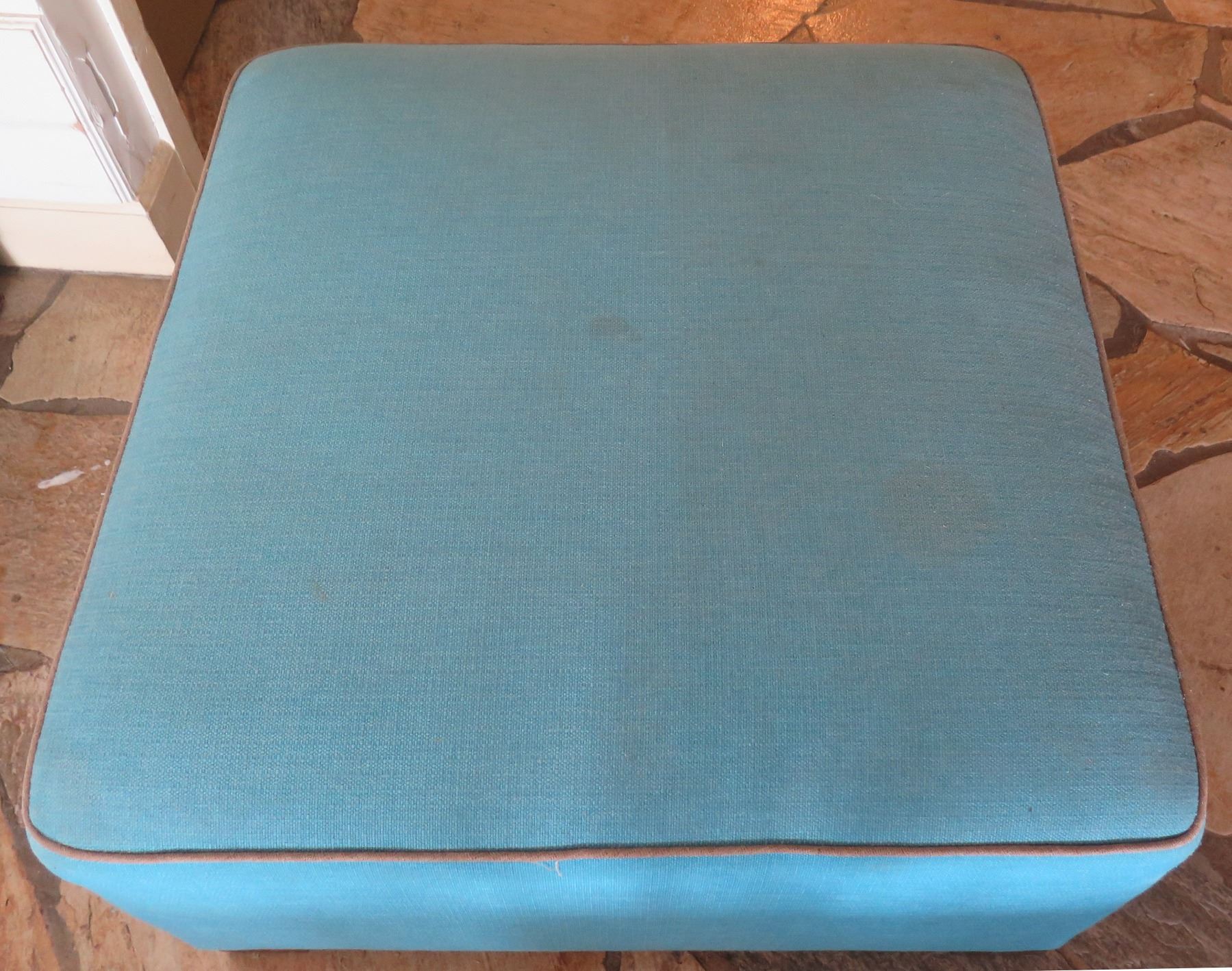 Blue Upholstered Ottoman w/ Wood Base 31.5 x31.5 x16.5
