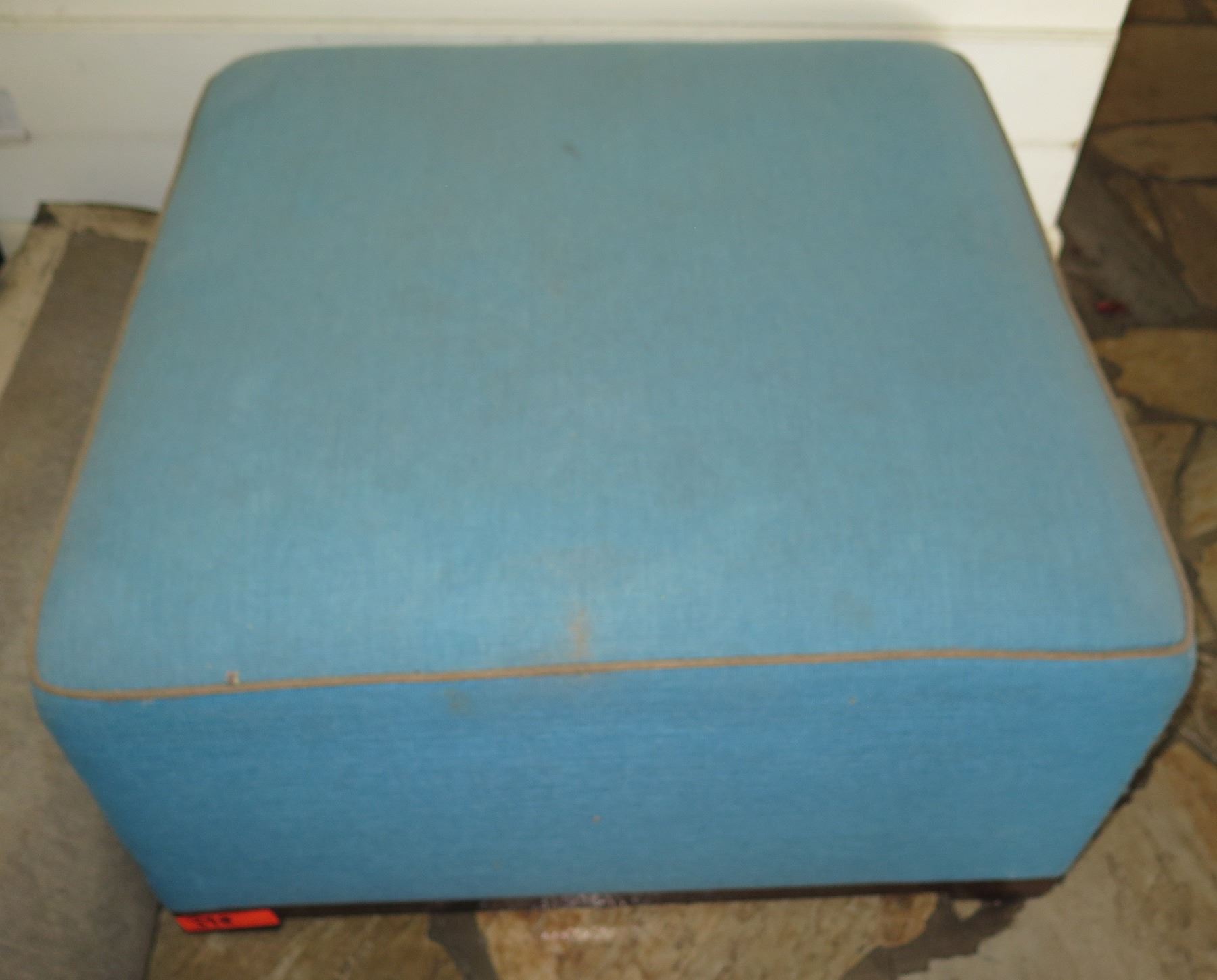 Blue Upholstered Ottoman w/ Wood Base 31.5 x31.5 x16.5