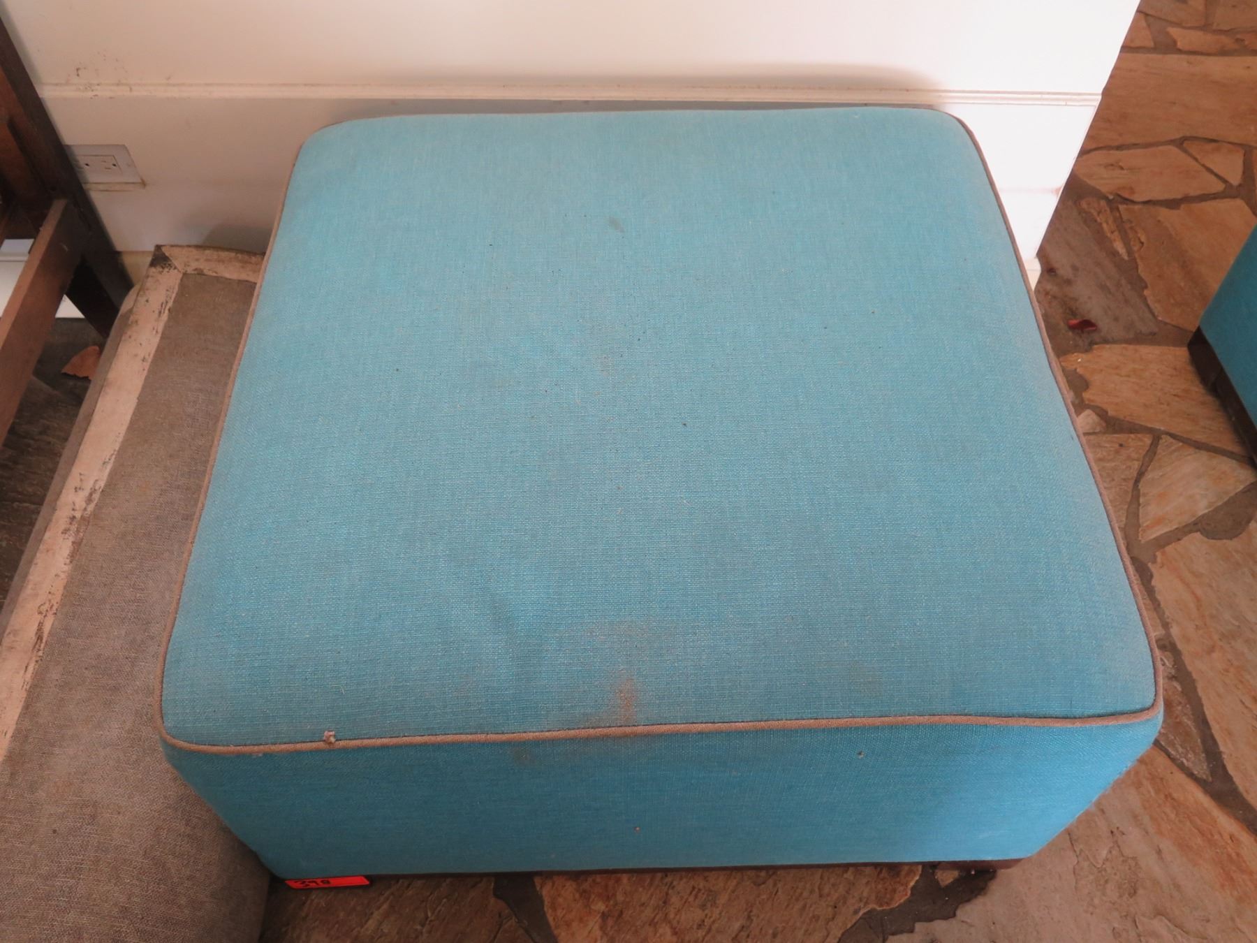 Blue Upholstered Ottoman w/ Wood Base 31.5"x31.5"x16.5"