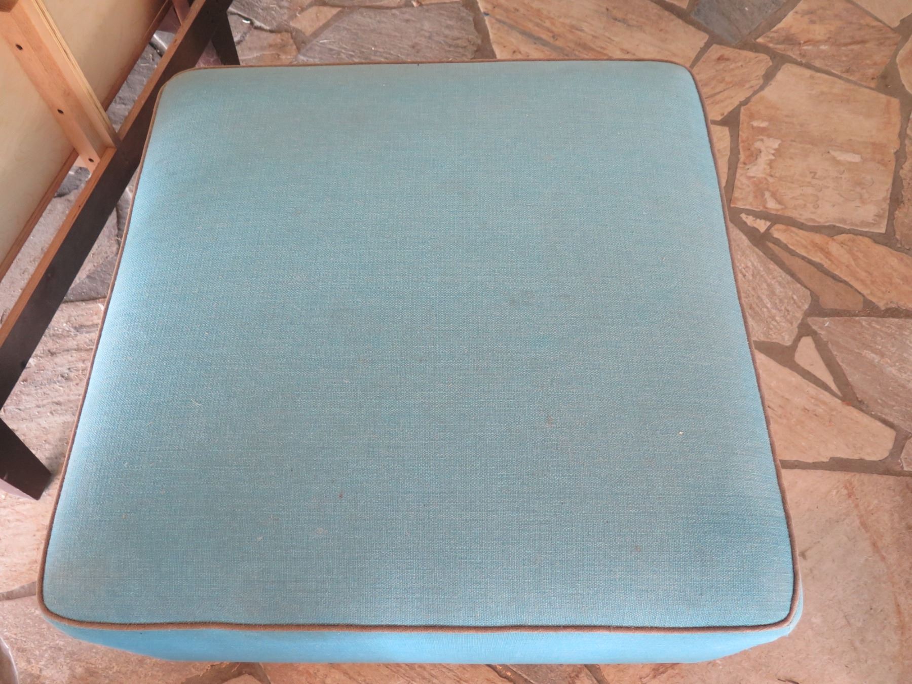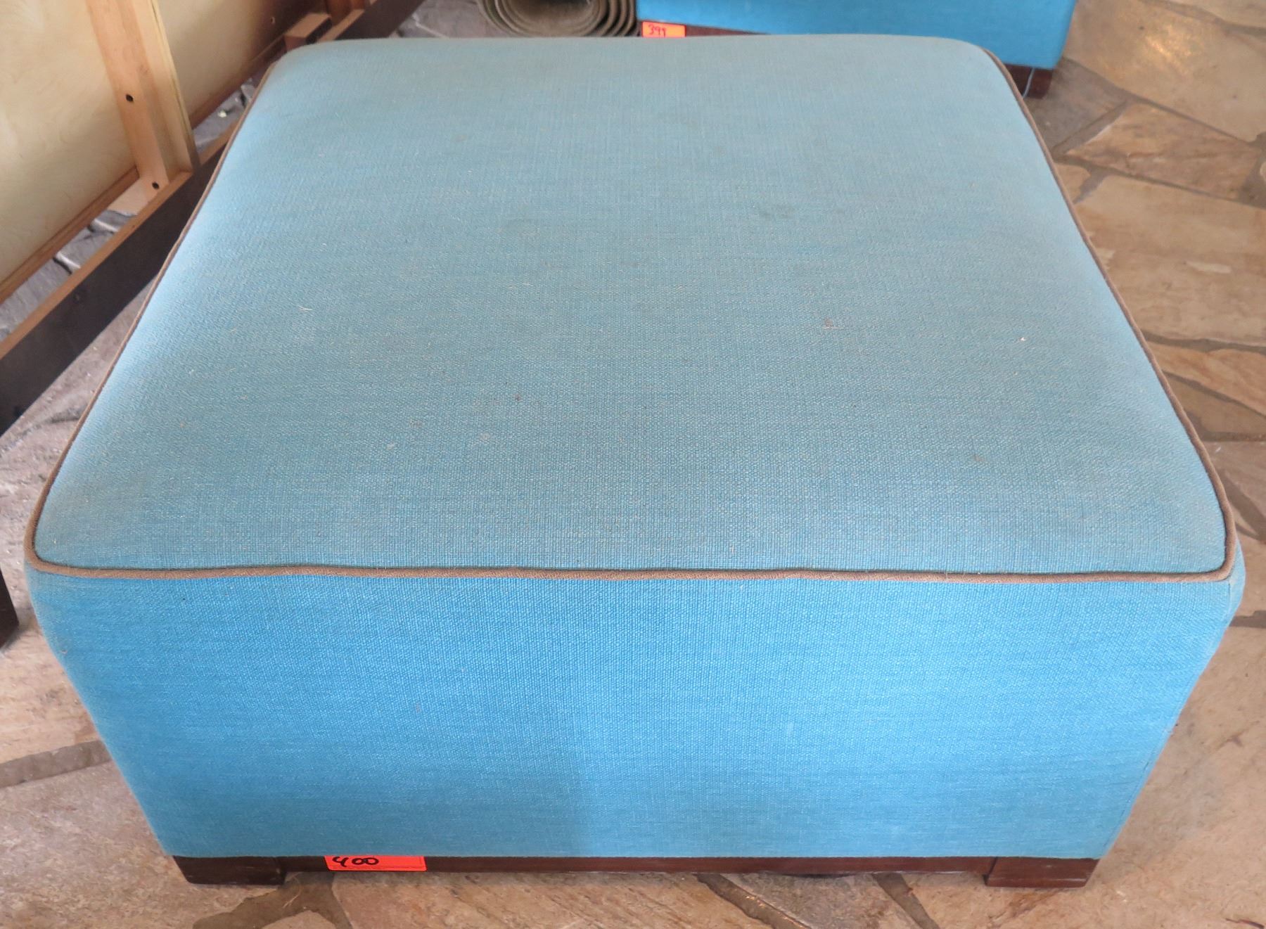 Blue Upholstered Ottoman w/ Wood Base 31.5"x31.5"x16.5"
