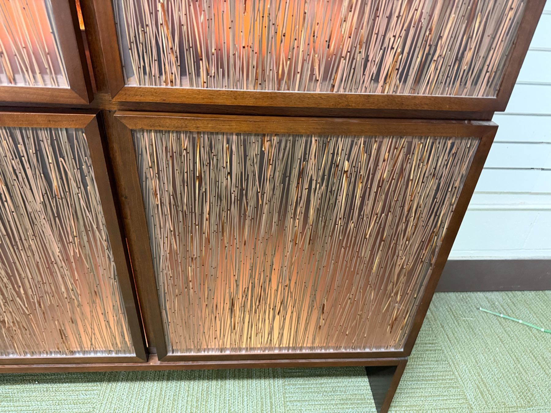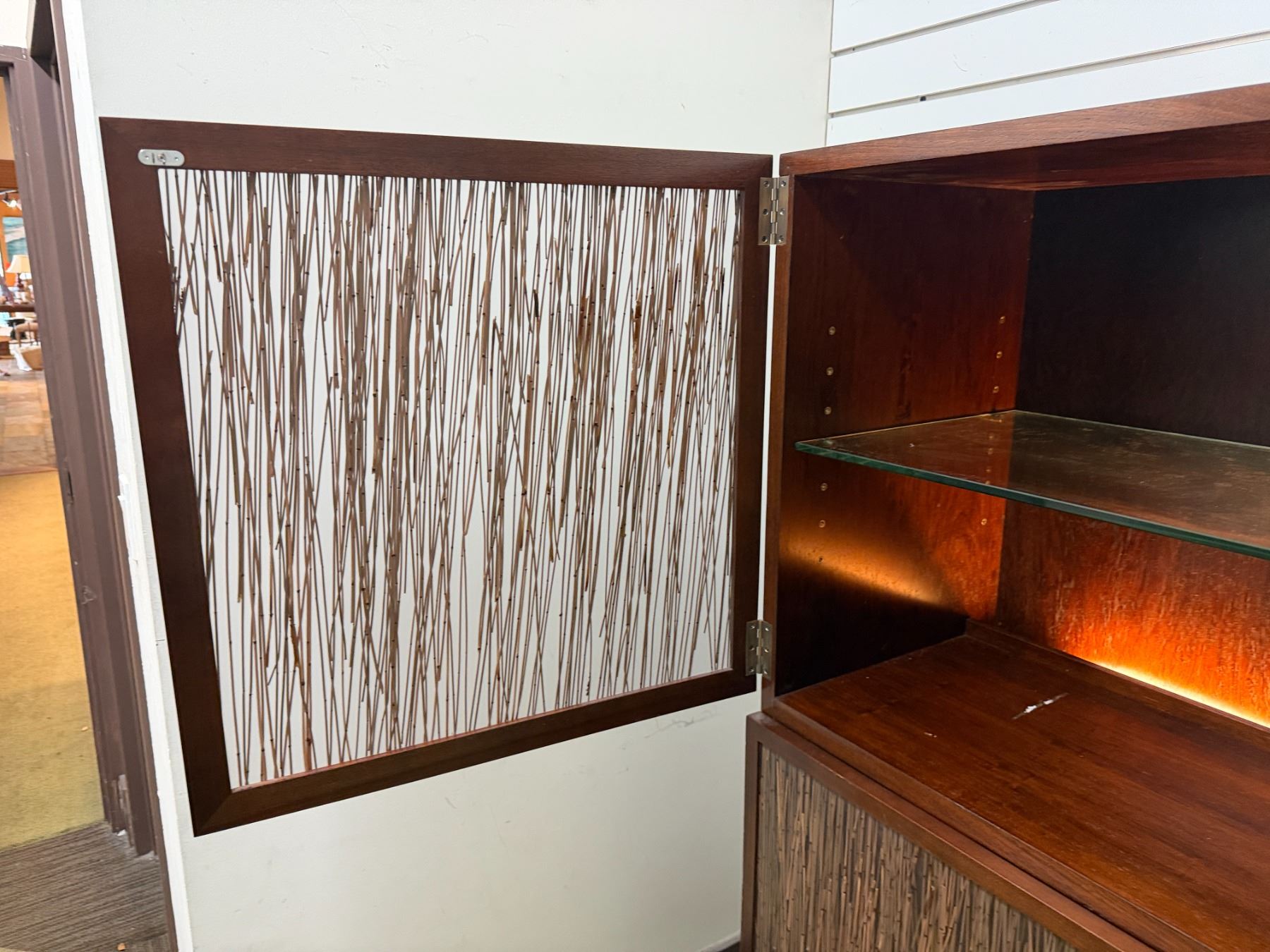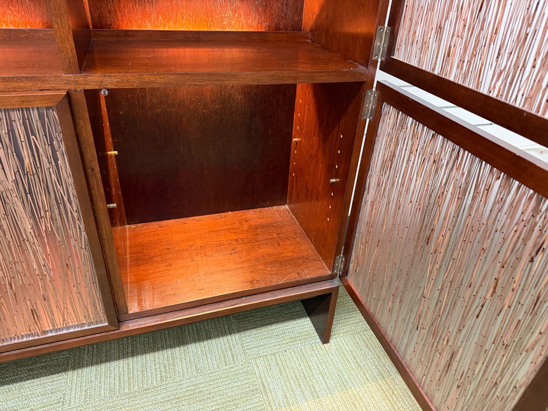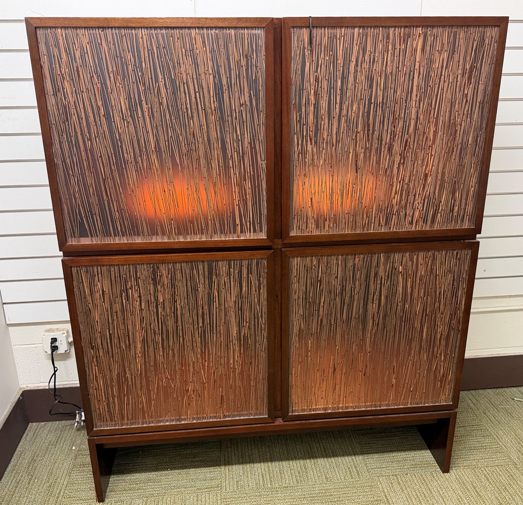 Bolier Wooden Cabinet w/ Double-Sided Display, 4 Textured Panels, Inside Shelving & Lights 55" x 20