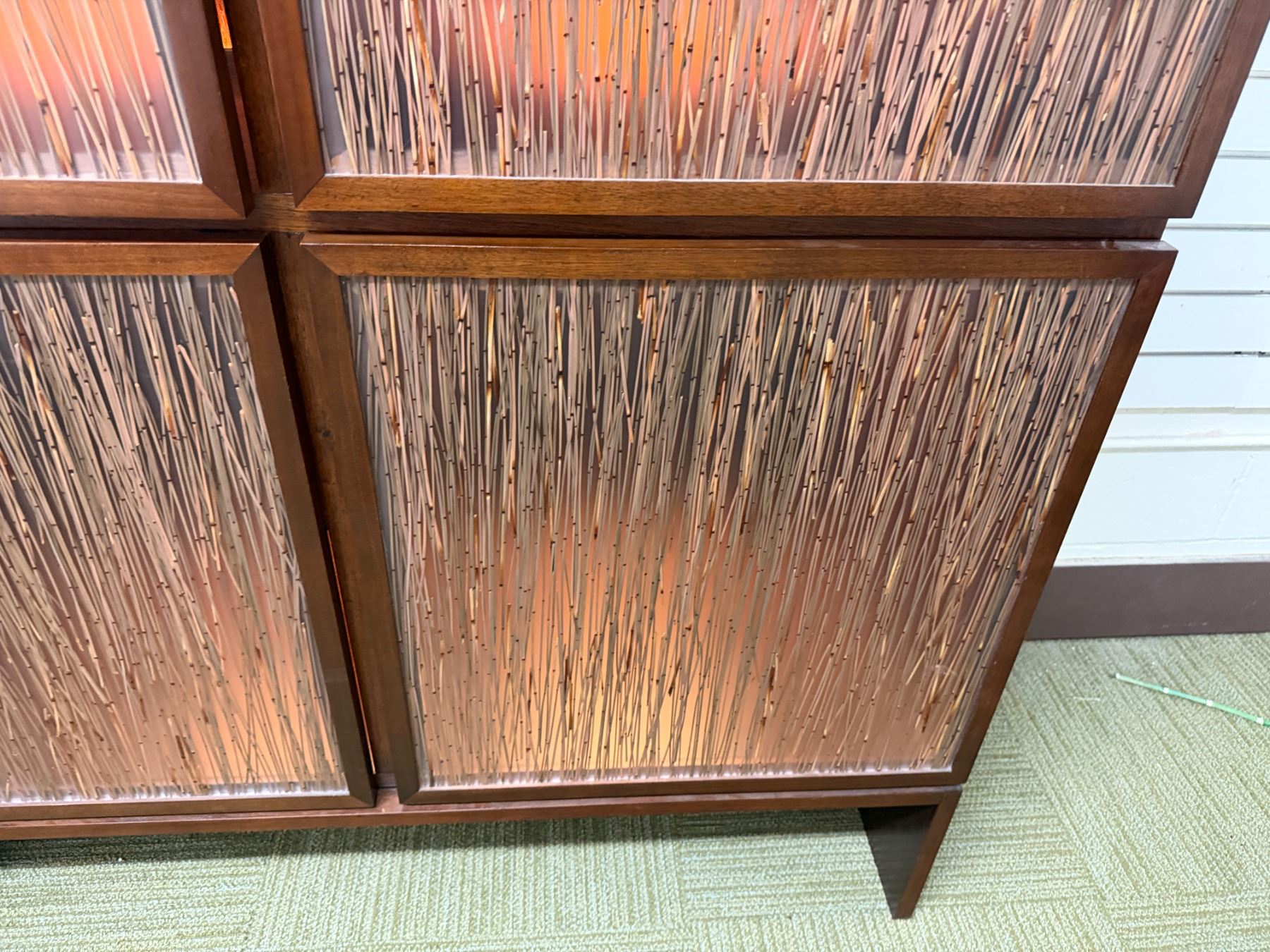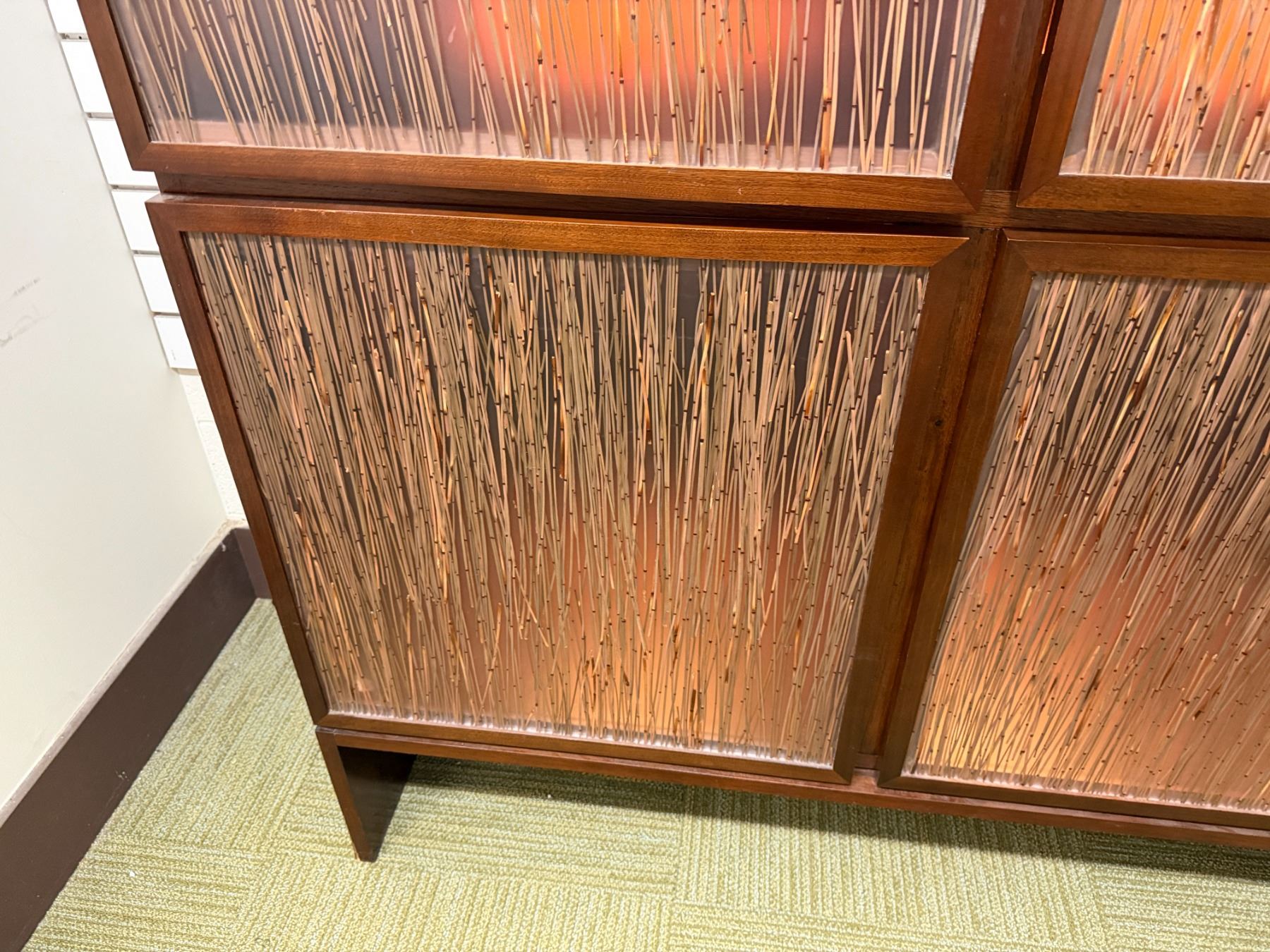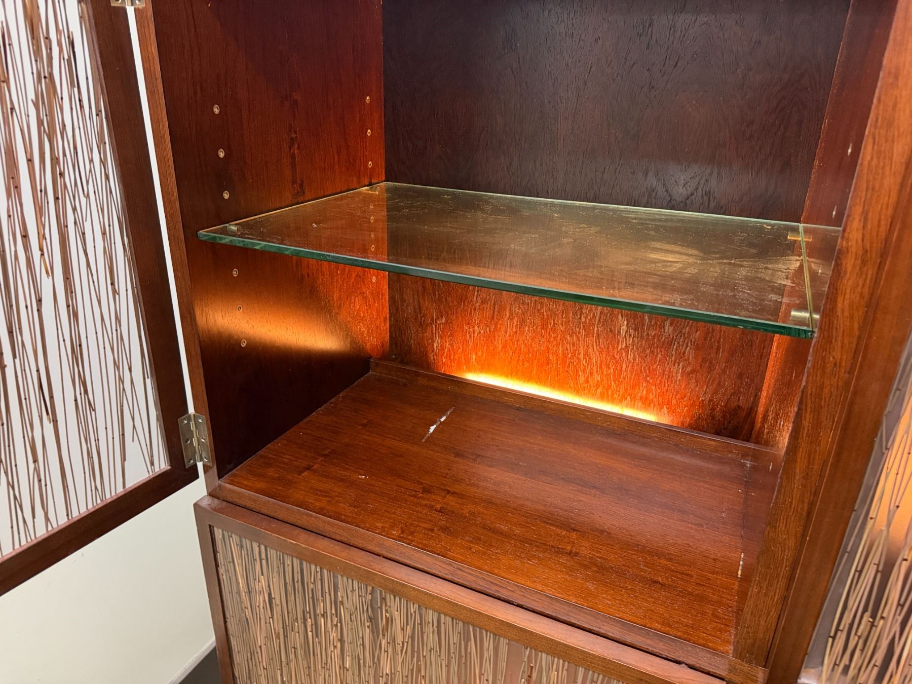 Bolier Wooden Cabinet w/ Double-Sided Display, 4 Textured Panels, Inside Shelving & Lights 55" x 20