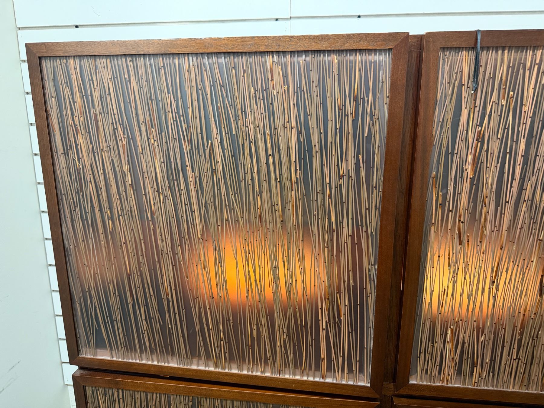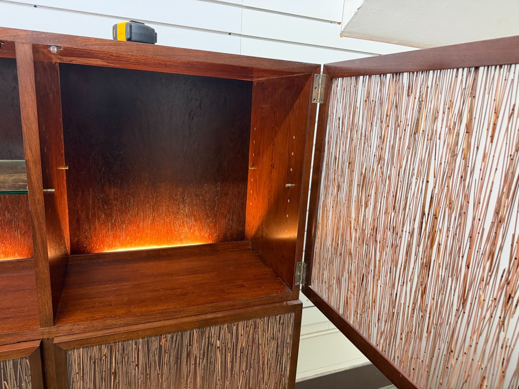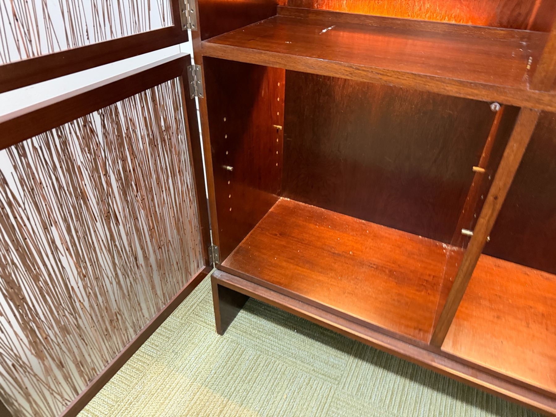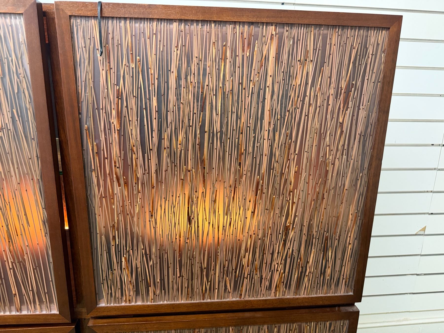 Bolier Wooden Cabinet w/ Double-Sided Display, 4 Textured Panels, Inside Shelving & Lights 55" x 20