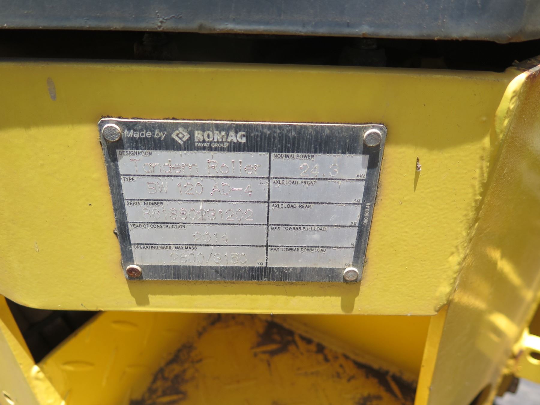 Bomag BW 120 AD-4 Tandem Vibratory Roller (Starts & Runs - See Video)