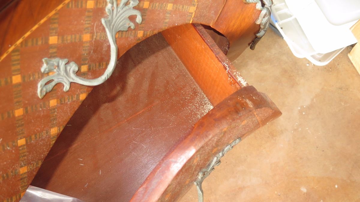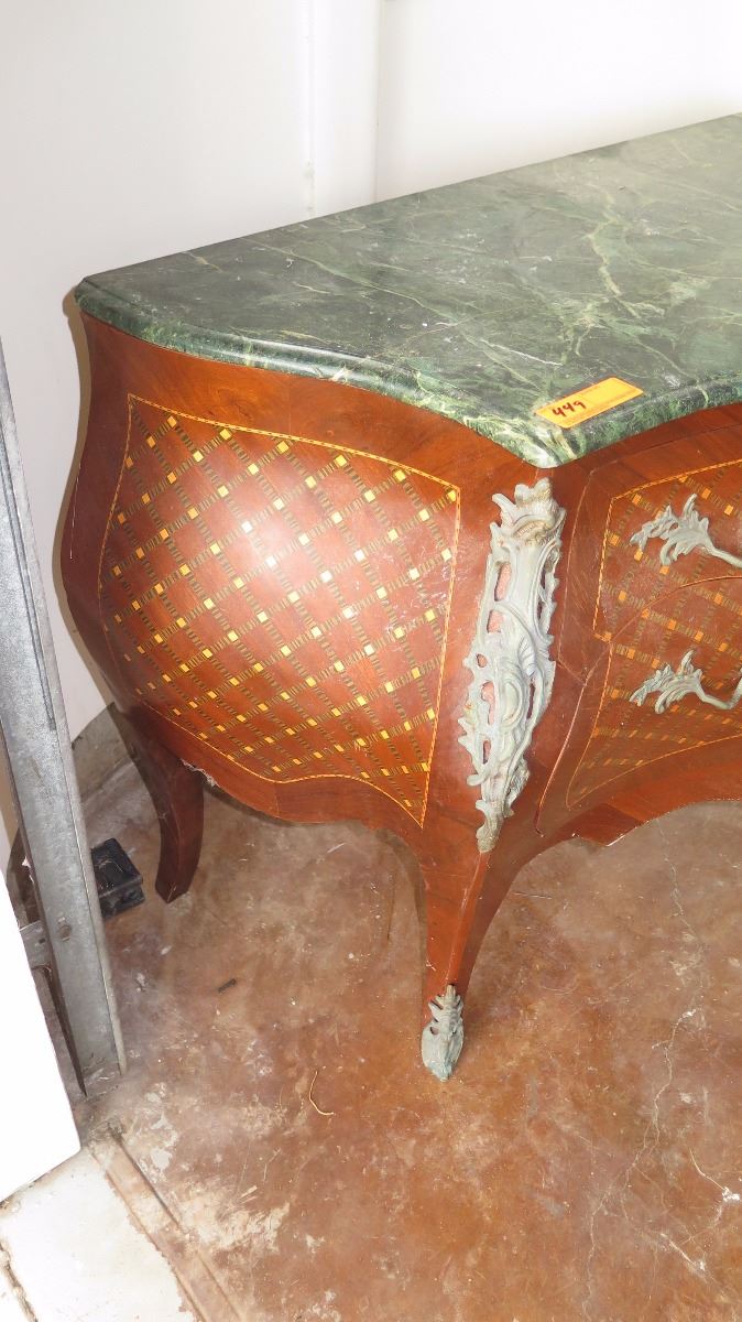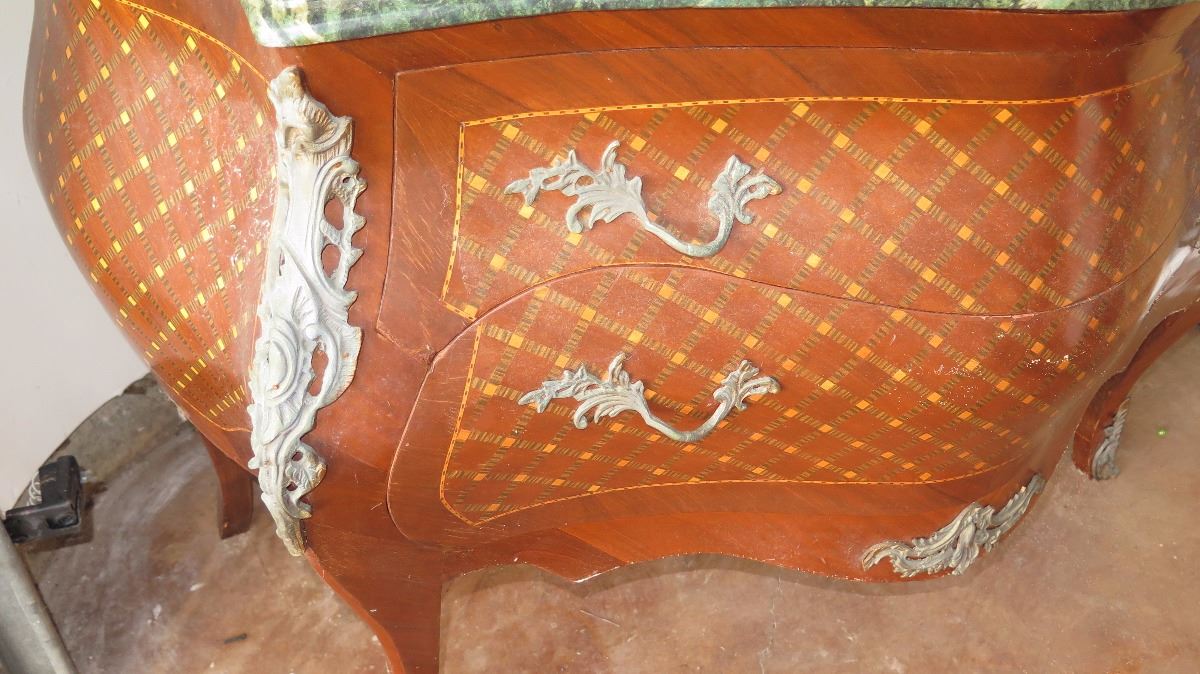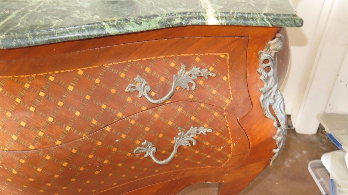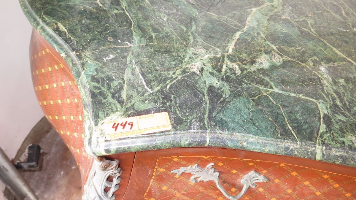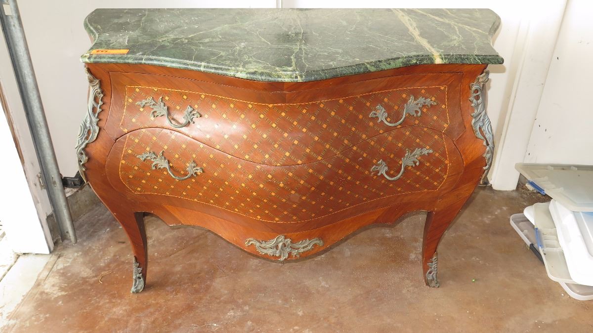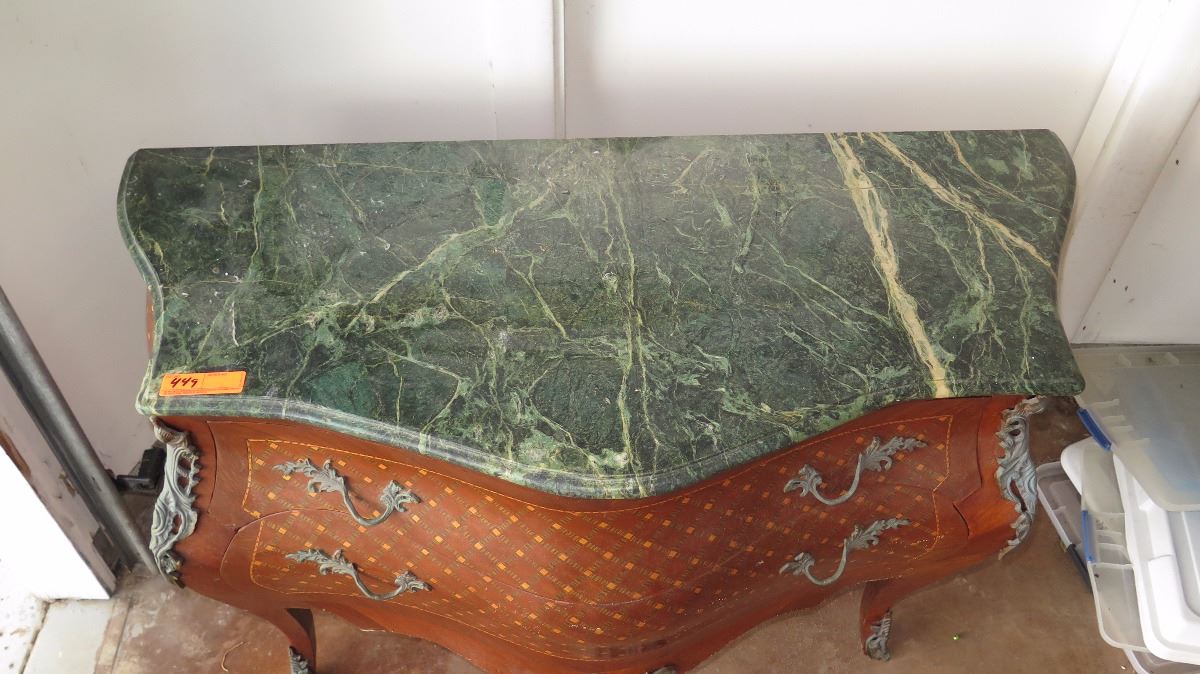 Bombe Chest w/Green Marble Top, Hardware Embellishments (may have termite damage) 49x22x32