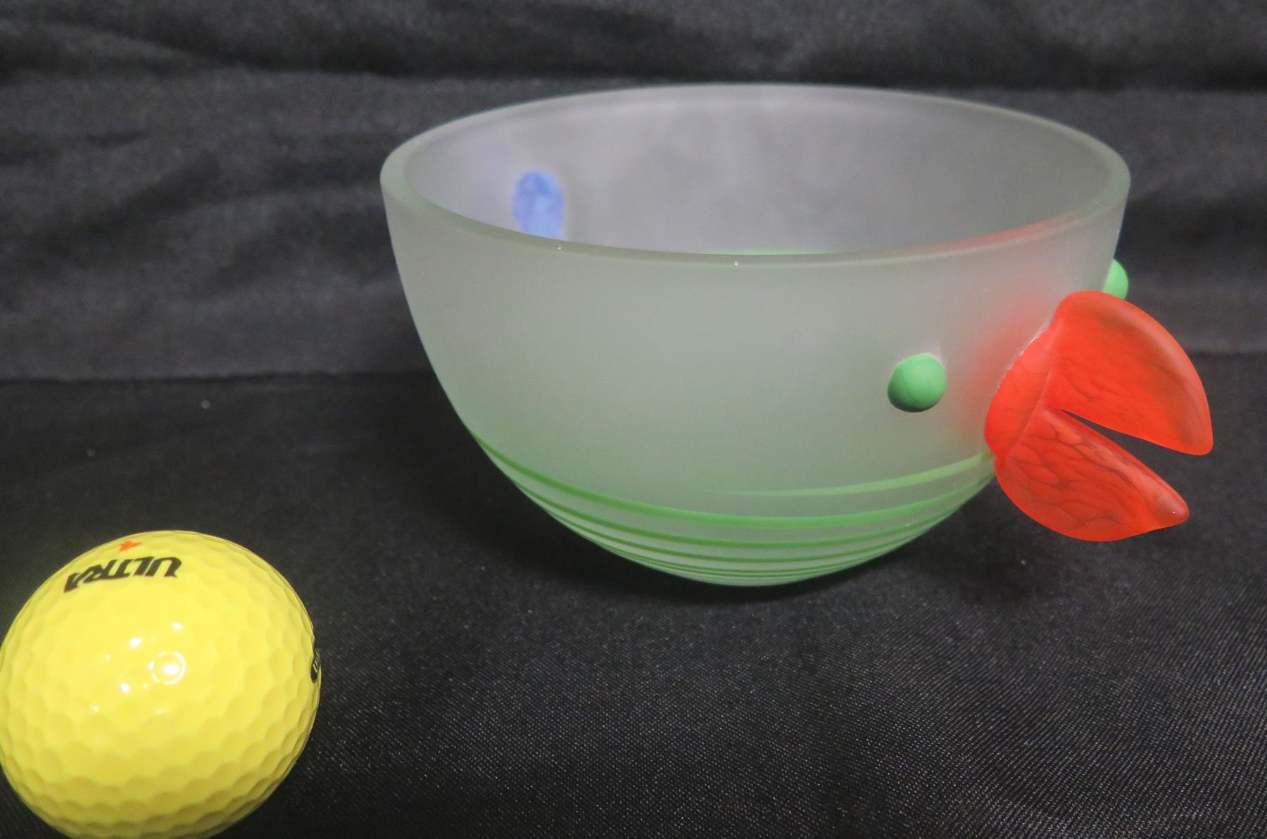 Borowski Glass Studio Germany Bowl w/ Chicken Eyes, Beak & Tail 6"L x 3"H