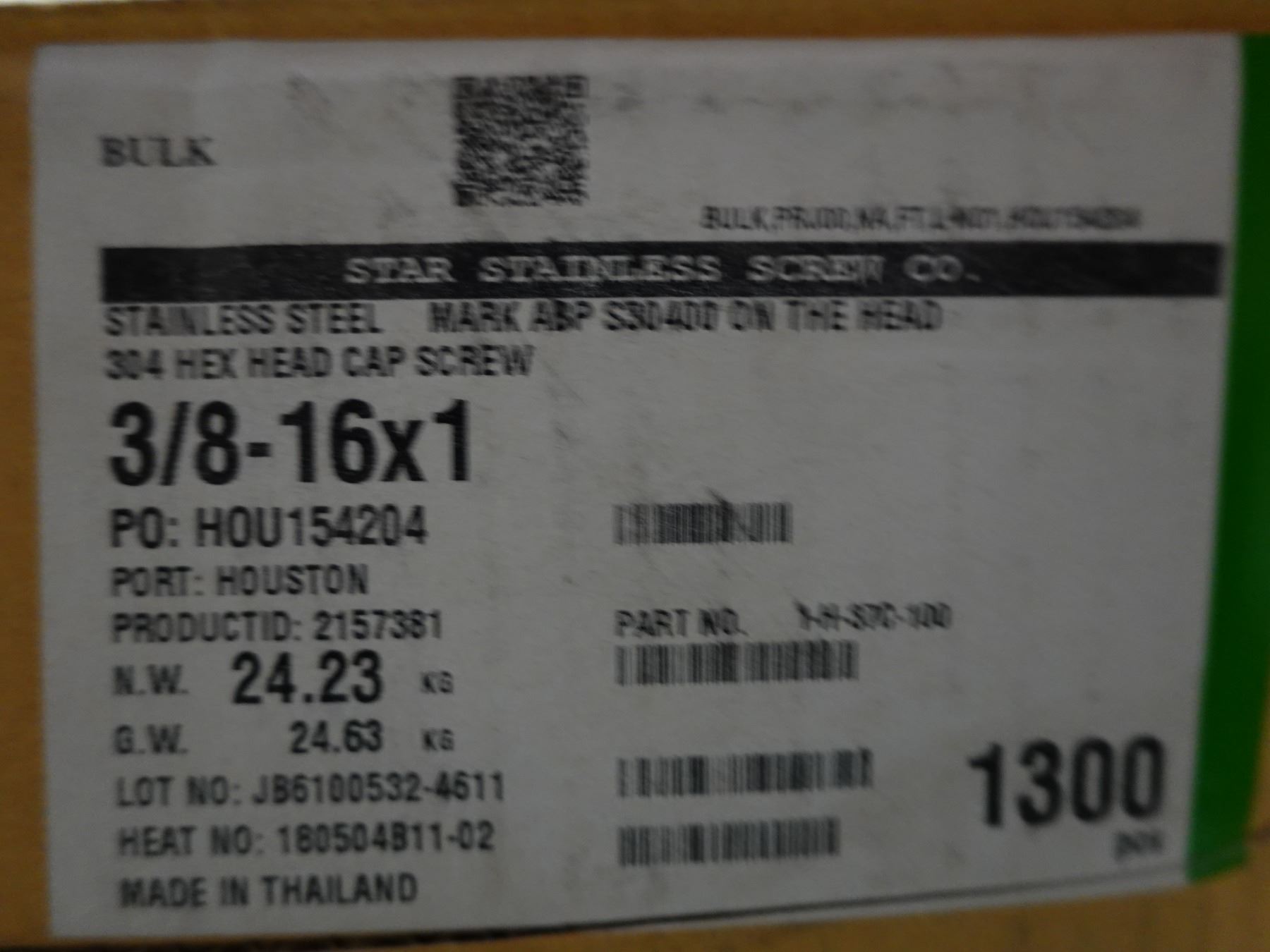 Box 1-H-37C-100 Stainless Steel Hex Cap Screws