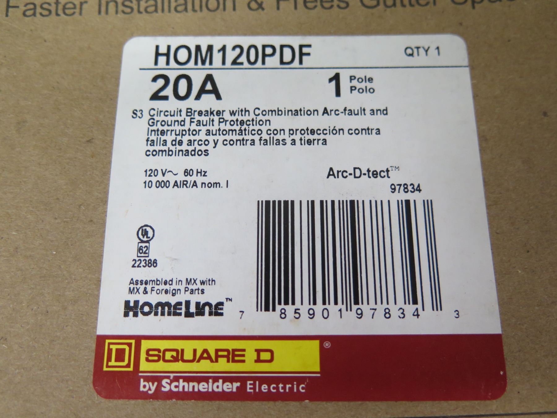 Box (Approx. 39) Schneider Electric Square D HOM120PDF Miniature Circuit Breakers