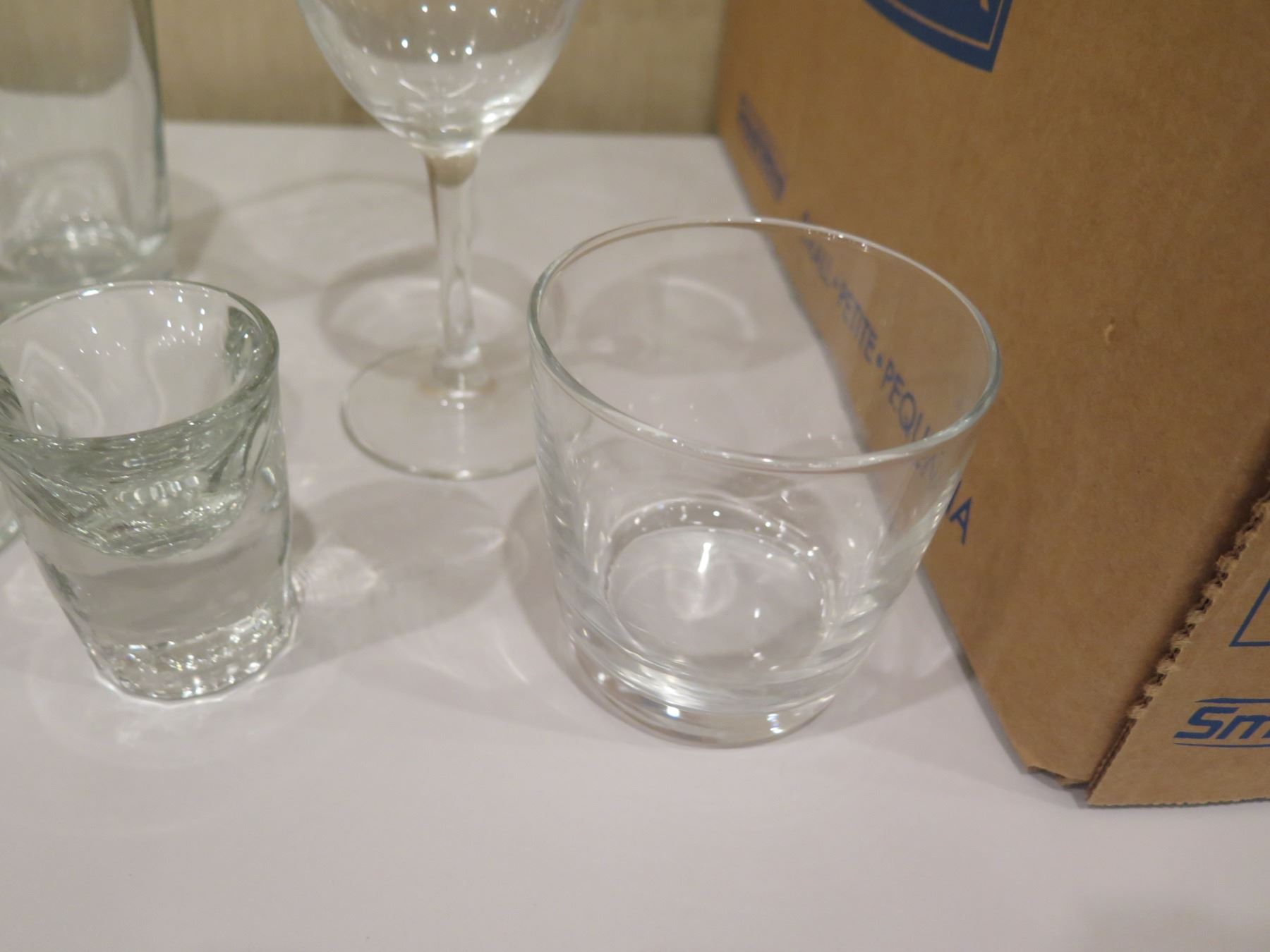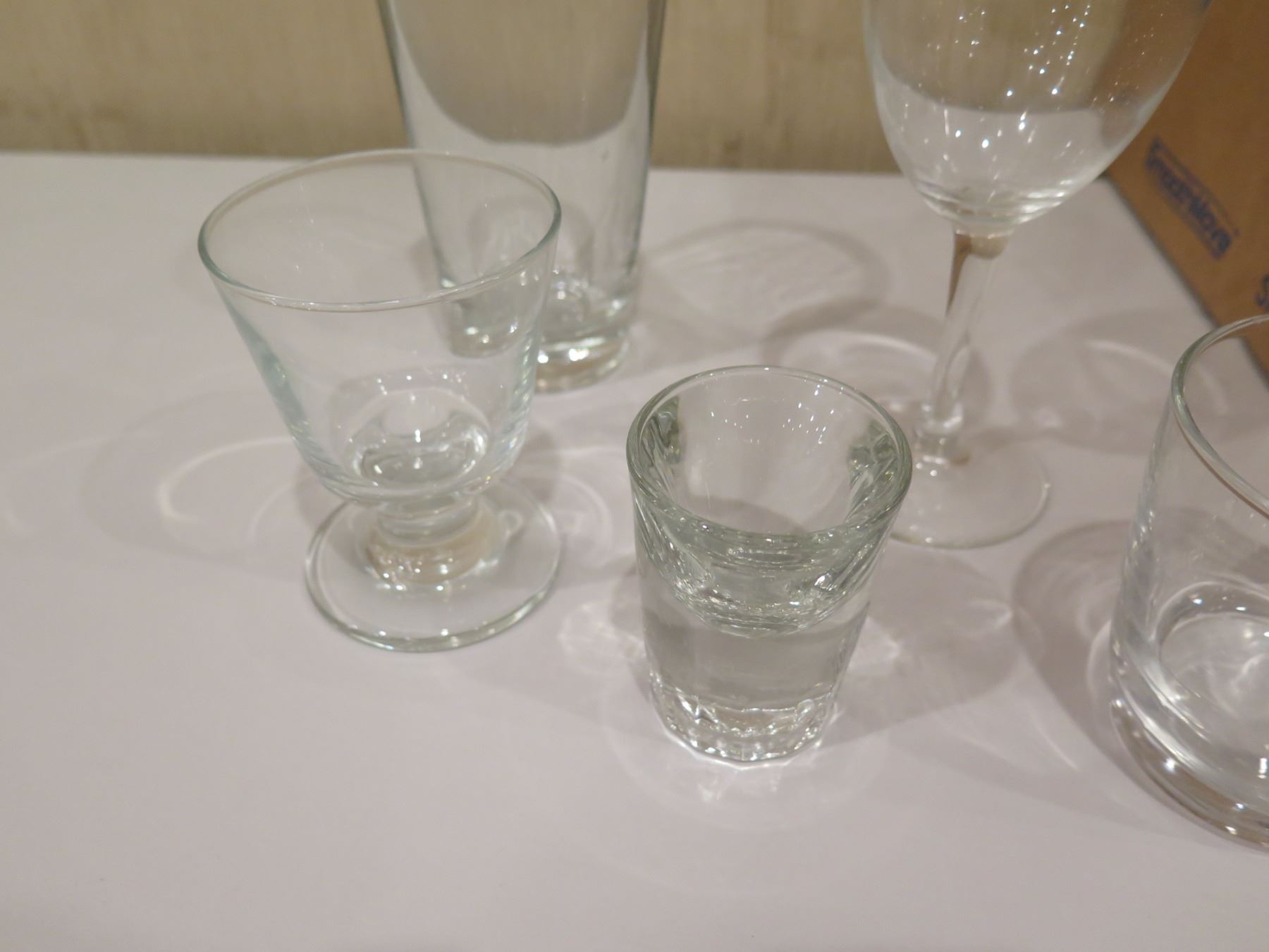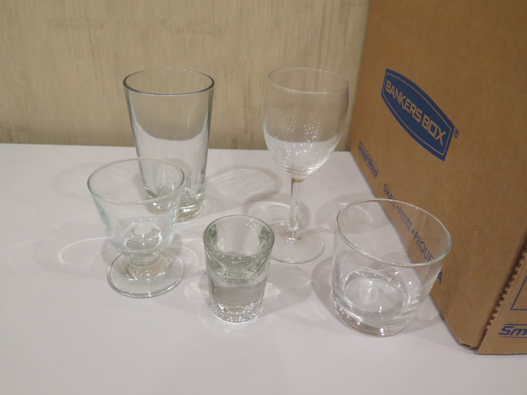 Box Misc Glassware: Wine Glasses, Tea Glasses, Shotglass etc