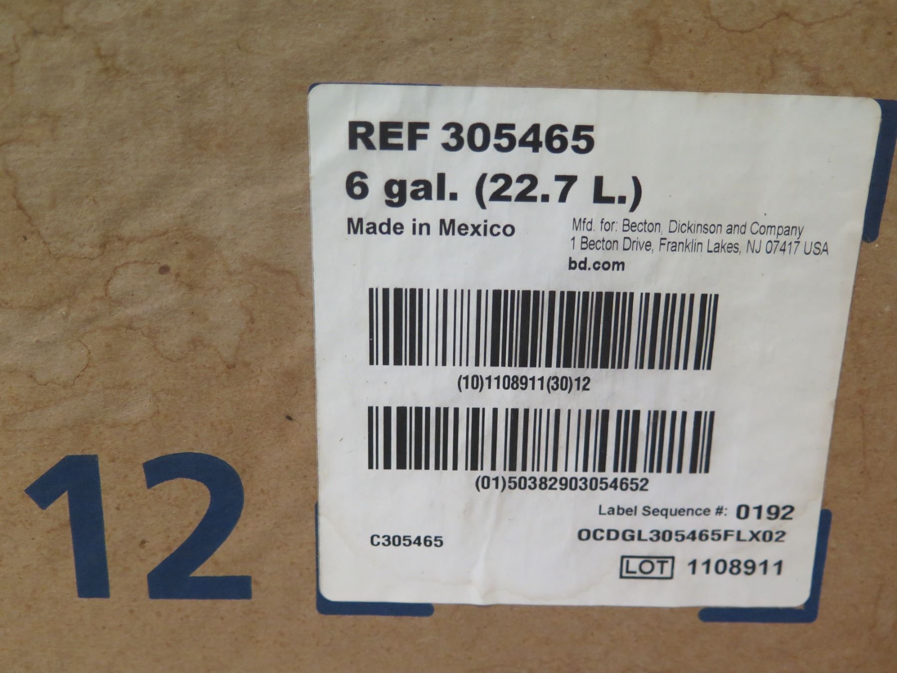 Box (Qty 12) BD 305465 Sharps Collectors 6 gal. w/ Lids