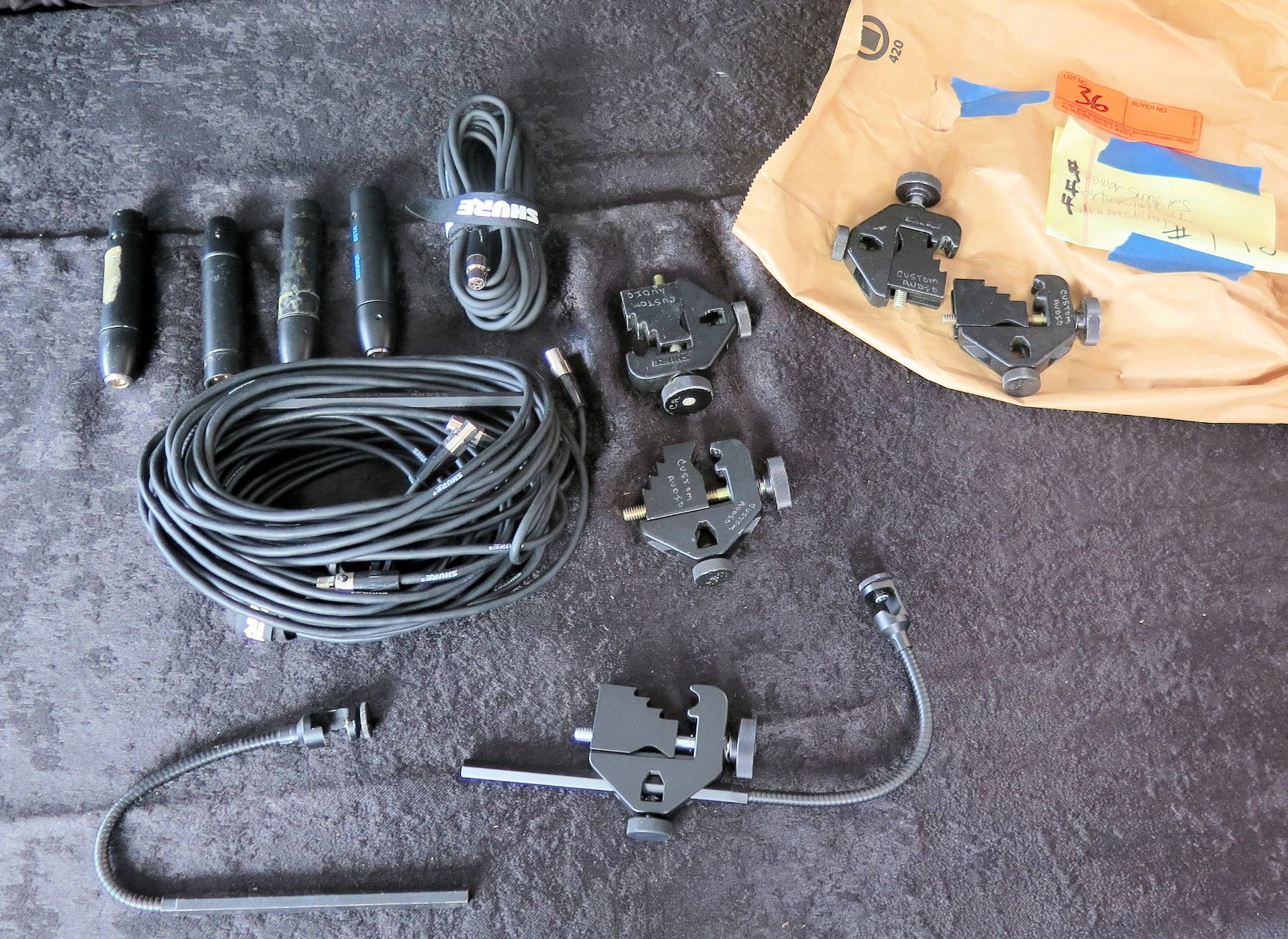 Box SHURE Beta98 Drum Mic Accessories: 4 Cables, 4 Power Supplies, 4 Tom Clamps