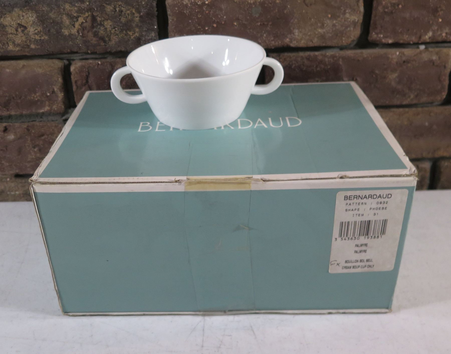 Box of 6 Bernardaud Porcelaine Palmyre Bowls w/ Handles  Made in France
