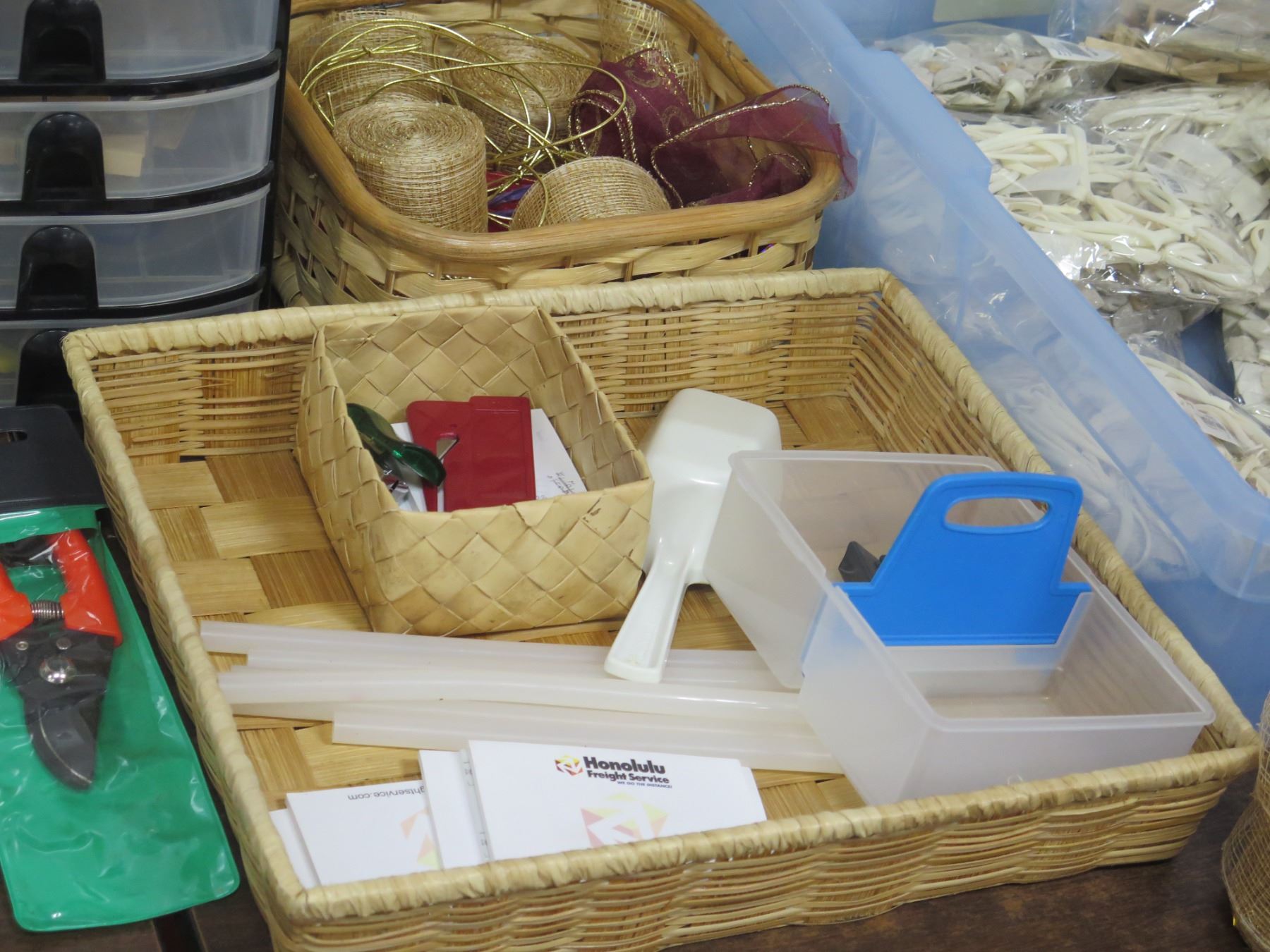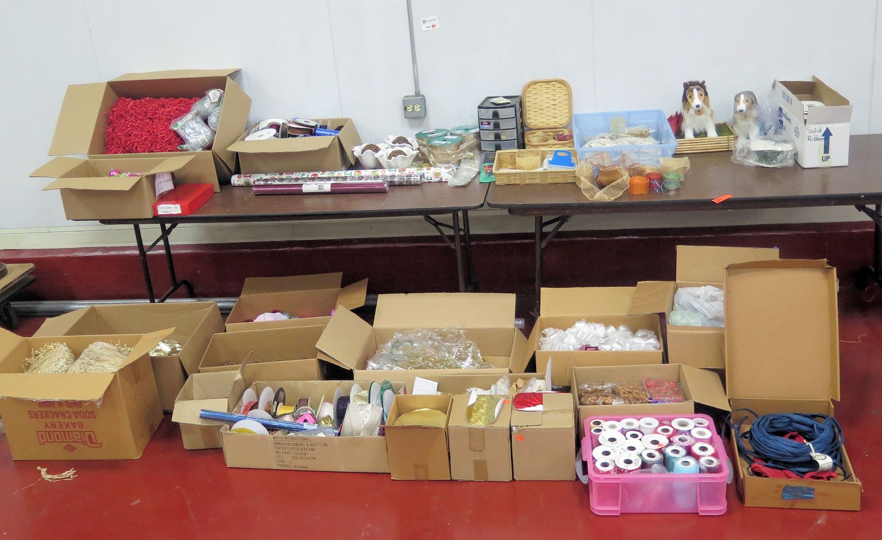 Boxes Misc Tulle Rolls, Bows, Paper, Ribbon, Christmas Ornaments, Shredder, etc