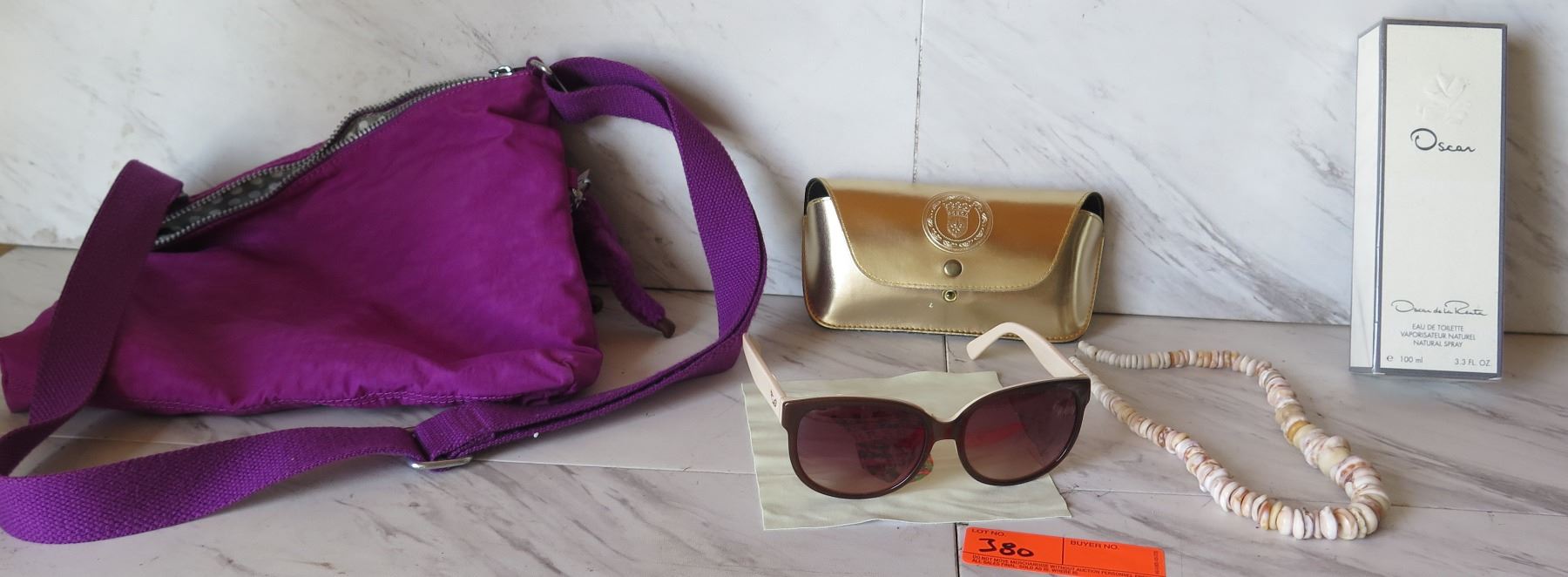 Brera Designer Sunglasses, Oscar DeLa Renta Perfume, Puka Shell Necklace. Everything in the auction is being sold “as is” with no guarantees or warranties. All sales final. Returns/refunds/exchanges will not be allowed. You are bidding on what you see in the pictures in their present condition. If you do not see an AC adapter, power cord/cable, batteries, accessories, manuals, original box it’s because we don’t have it. We have not personally used any of these items and unsure of functionaltiy of electronics, tools, equipment, gear, musical instruments, sporting goods items, bikes, mopeds, etc.