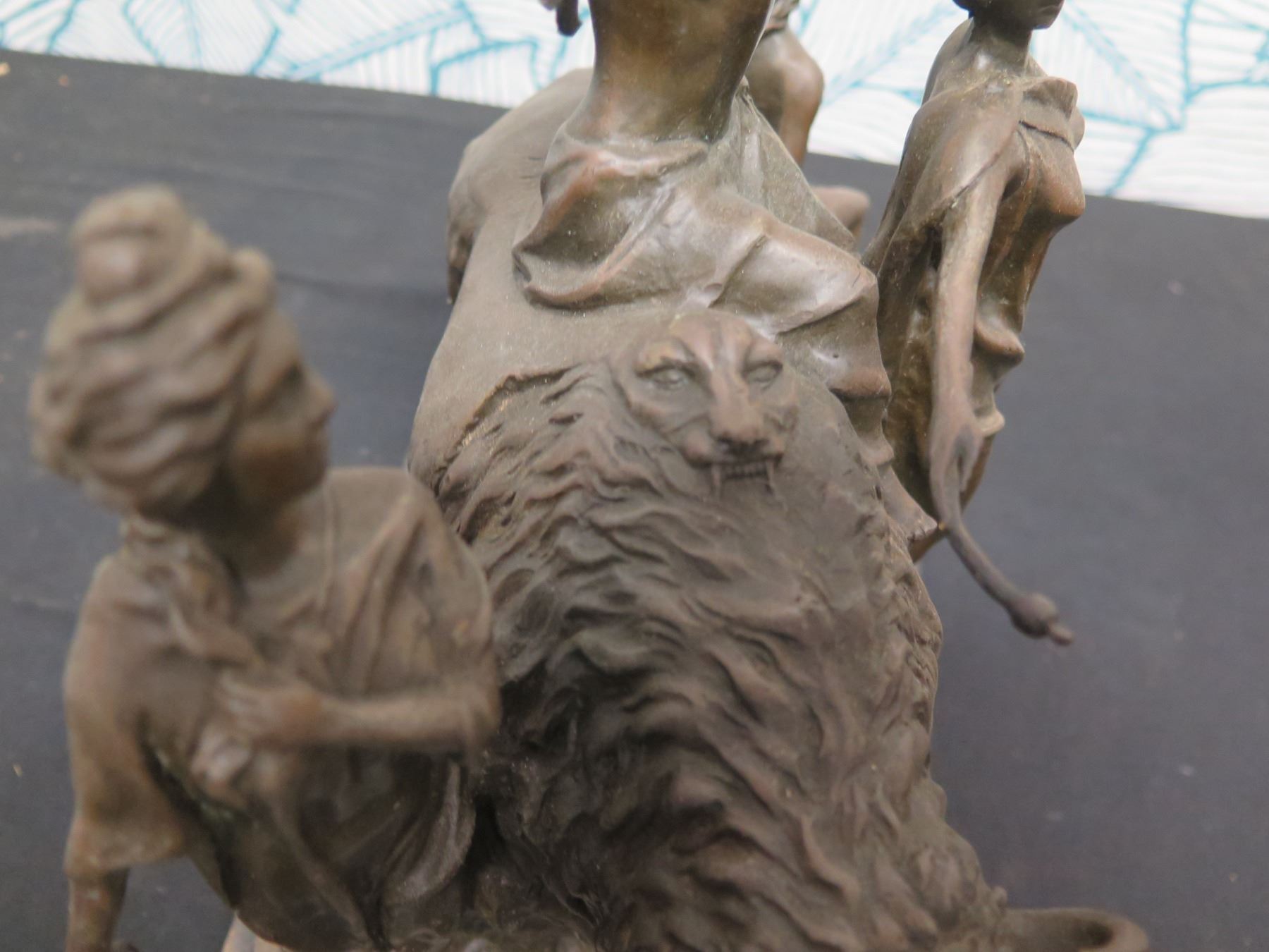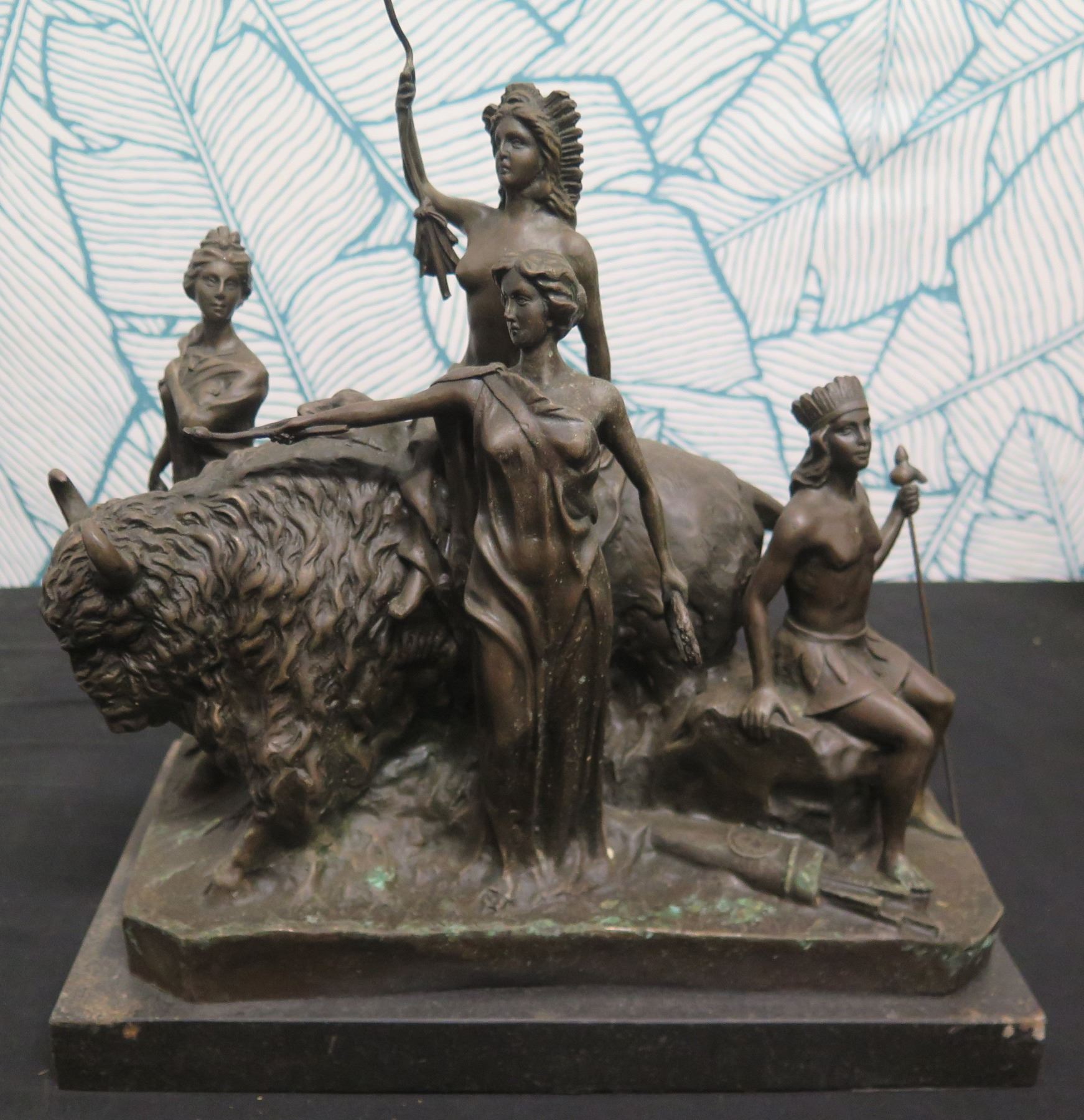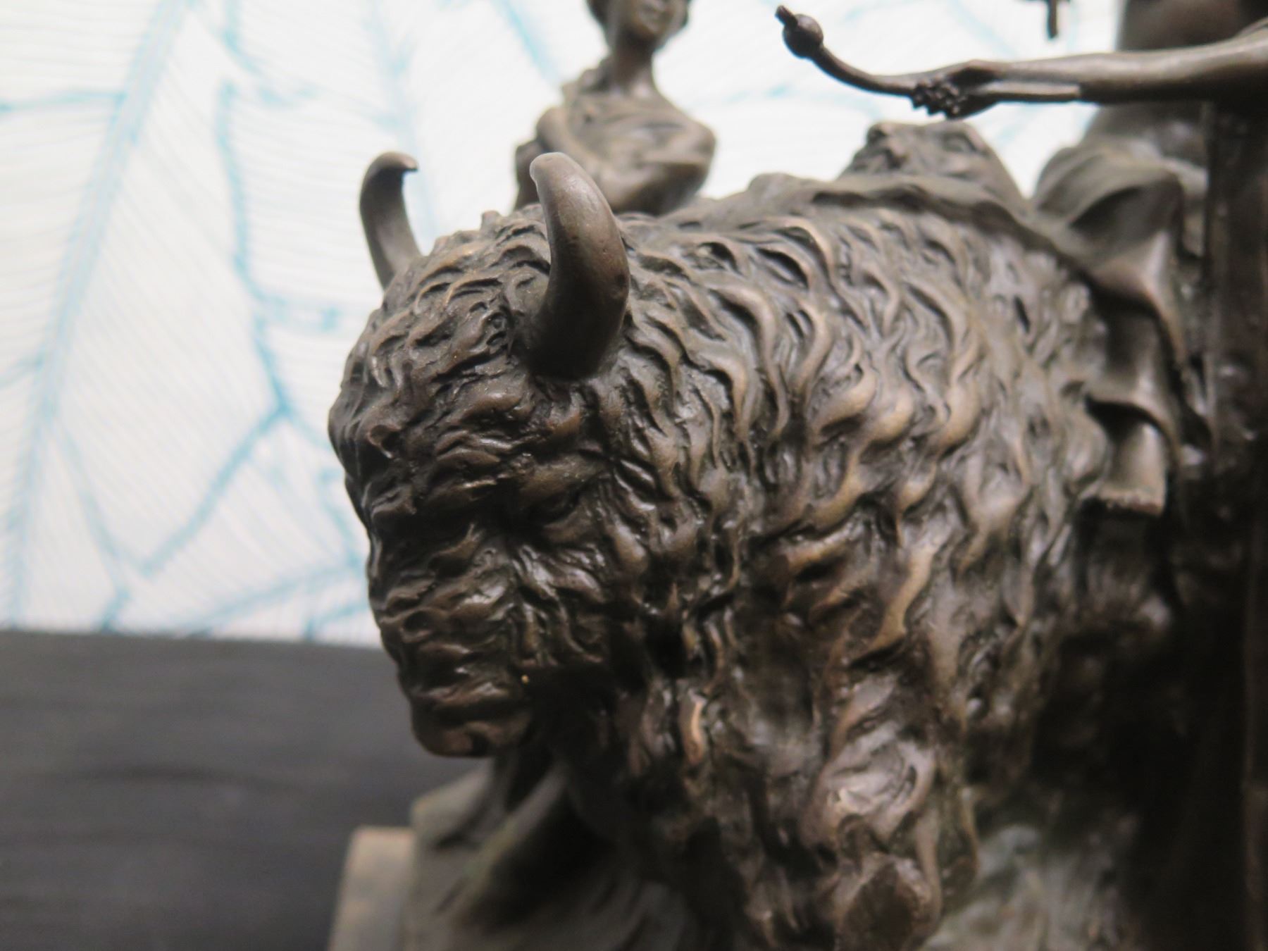 Bronze Nude Warrior Female w/ Bison Figure Signed Aldo Vitale 12"L x 13"H