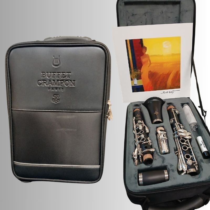 Buffet Champion Paris Black Clarinet Set includes: black clarinet, a reed, cork grease, and a sleek mini black carrying case.