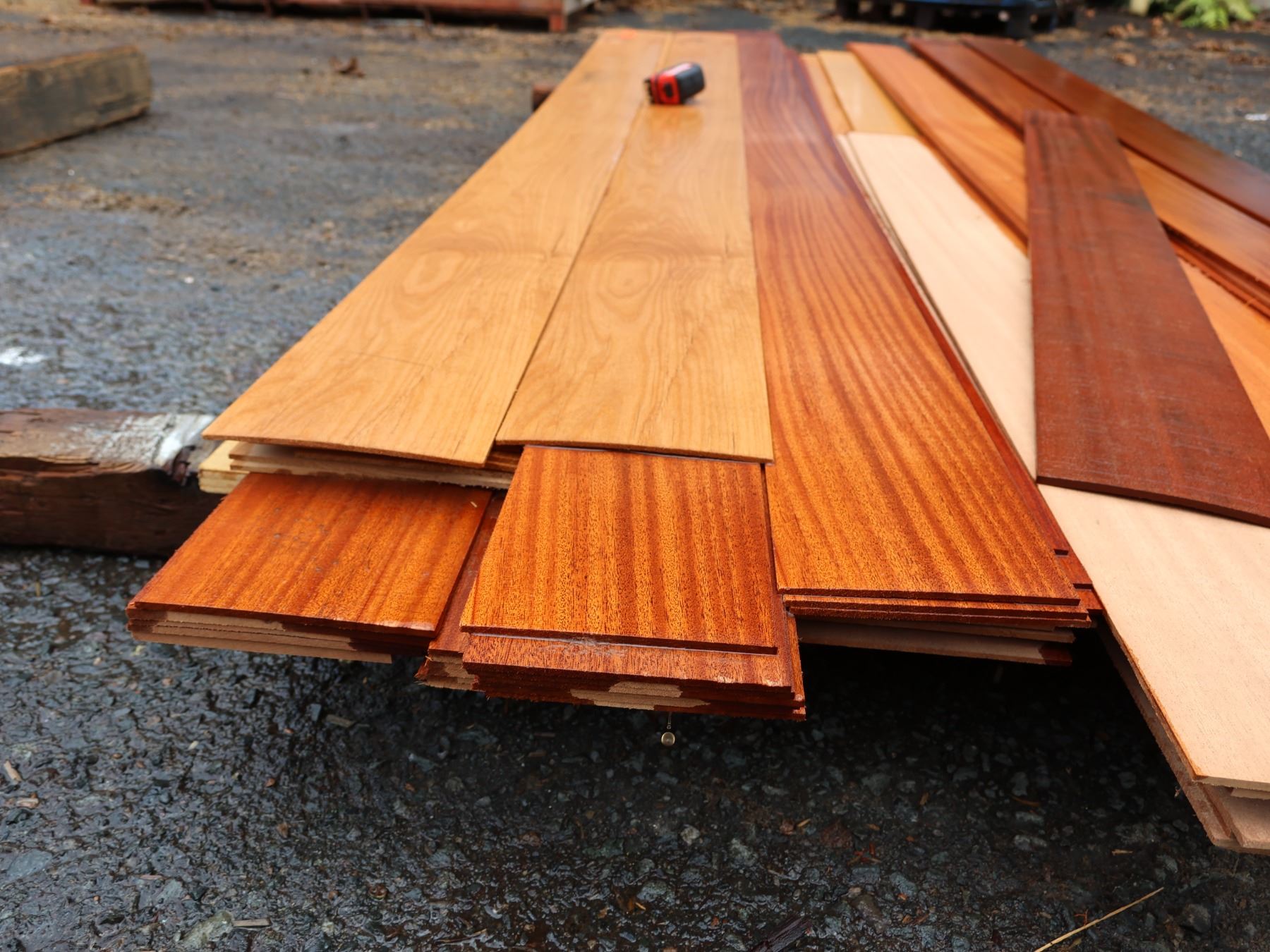 Bundle Ribbon Sapele/Mahogany Veneer, Misc Lengths to 108"L