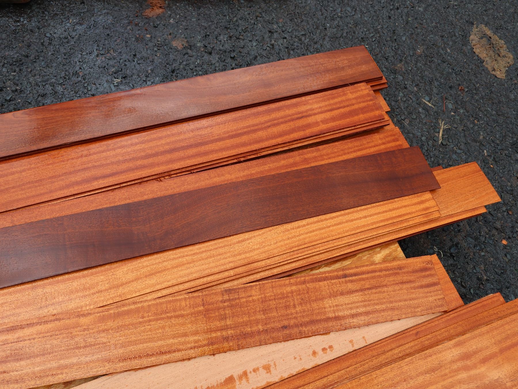 Bundle Ribbon Sapele Veneer, Misc Lengths to 108"L