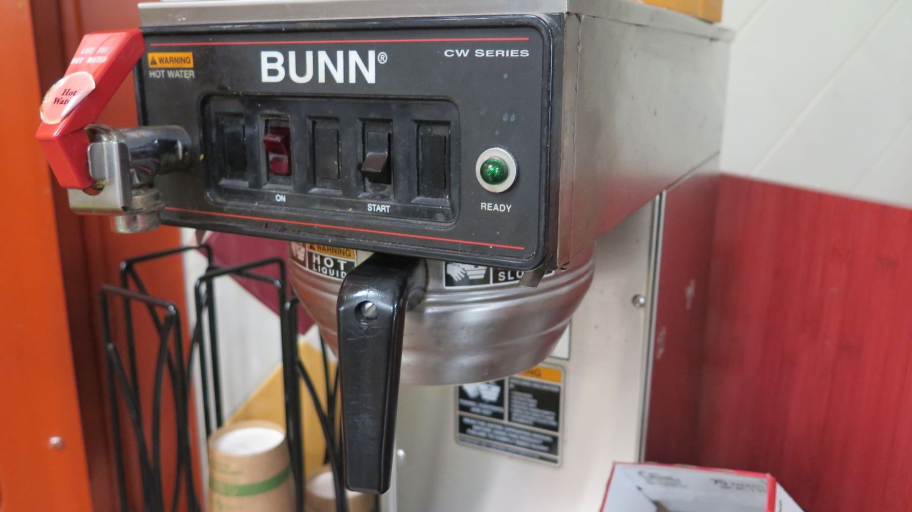 Bunn Airpot Coffee Brewer w/ Hot Water Faucet Model CTWF15. FOOD PRODUCTS AND MERCHANDISE IN THE PICTURES ARE NOT INCLUDED.