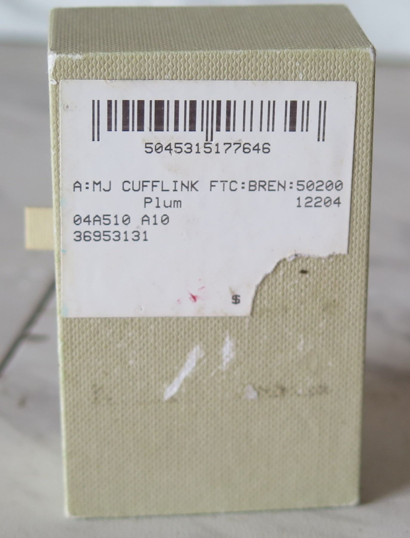 Burberry Cuff Links w/Box - Plum. Everything in the auction is being sold “as is” with no guarantees or warranties. All sales final. Returns/refunds/exchanges will not be allowed. You are bidding on what you see in the pictures in their present condition. If you do not see an AC adapter, power cord/cable, batteries, accessories, manuals, original box it’s because we don’t have it. We have not personally used any of these items and unsure of functionaltiy of electronics, tools, equipment, gear, musical instruments, sporting goods items, bikes, mopeds, etc.