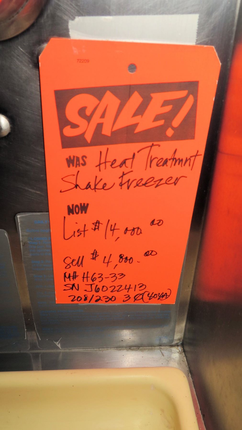 Burger King Heat Treatment Shake Freezer Model H63-33