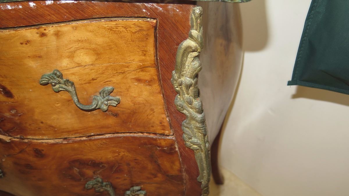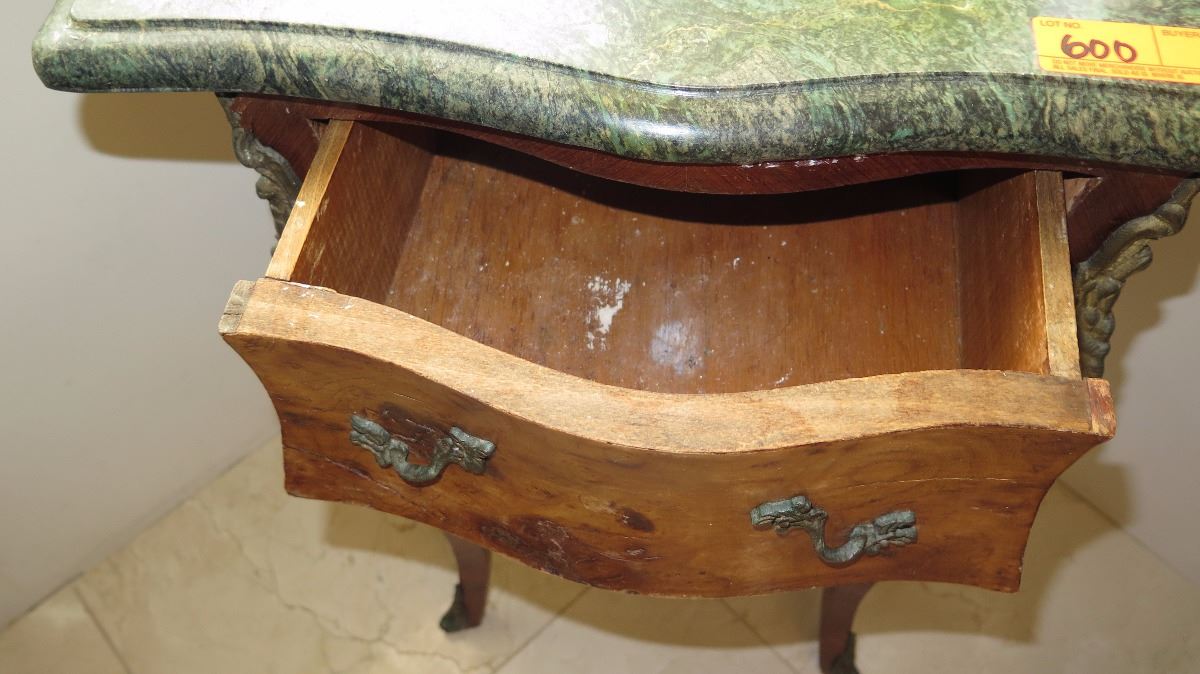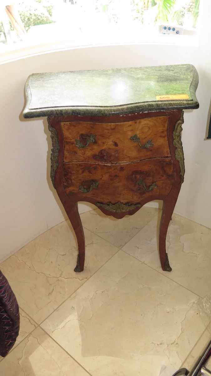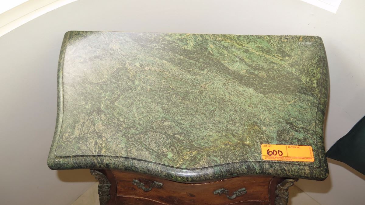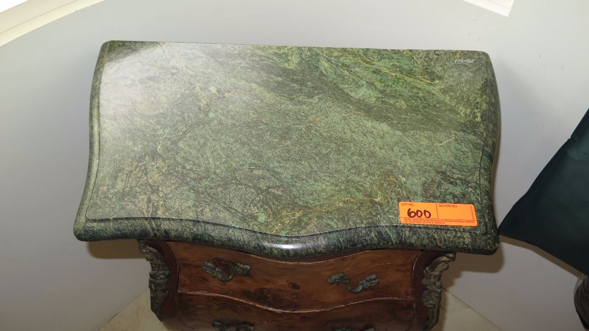 Burl Wood Bombe Chest Side Table w/Green Marble Top 32x13x28