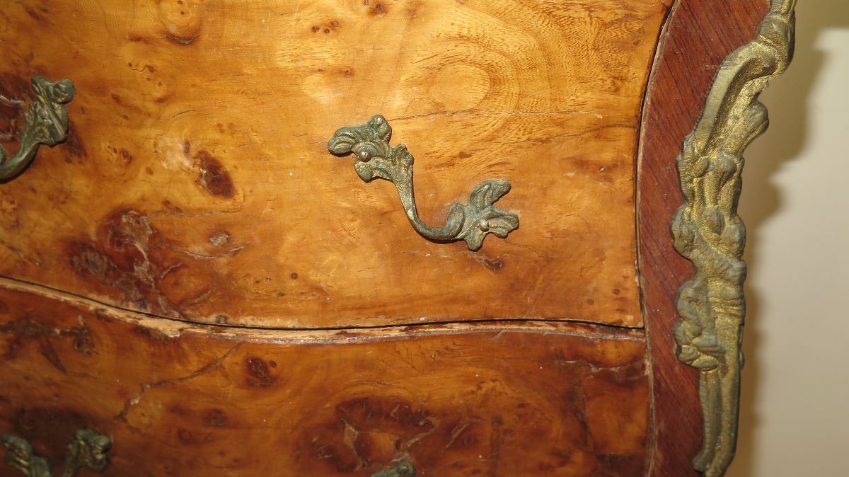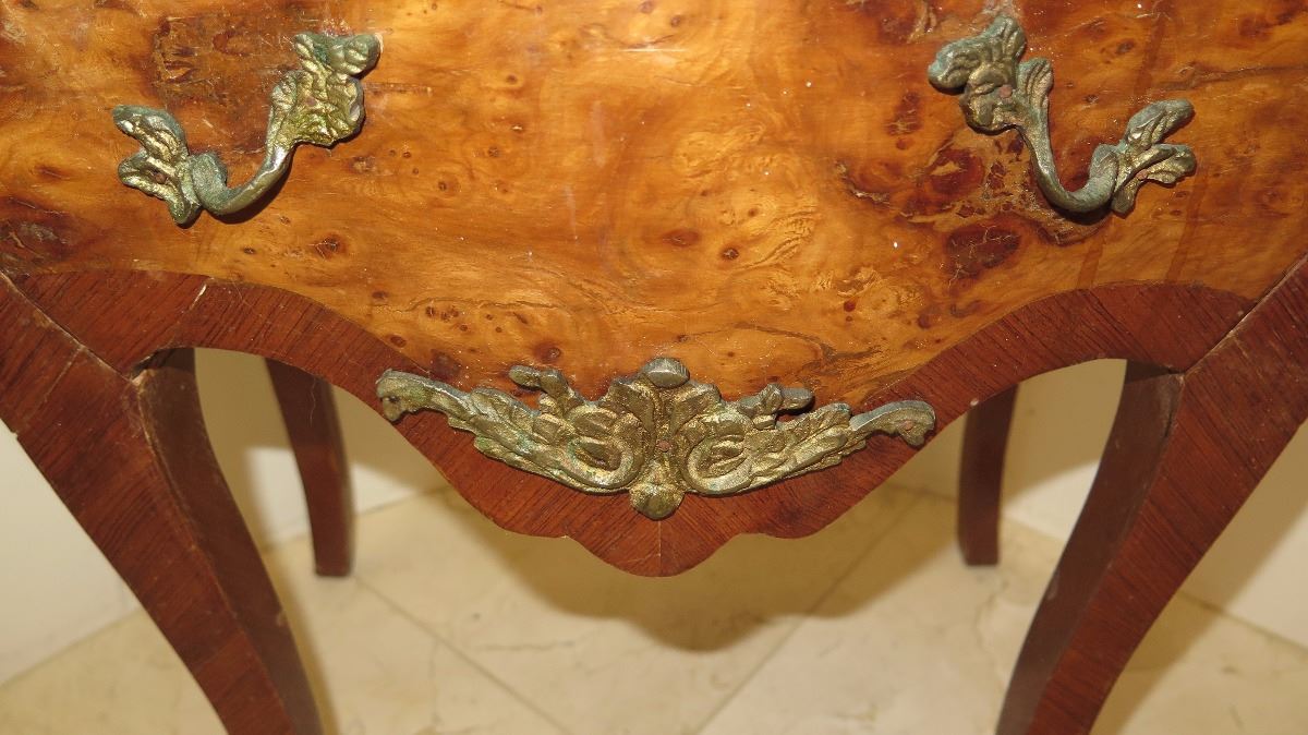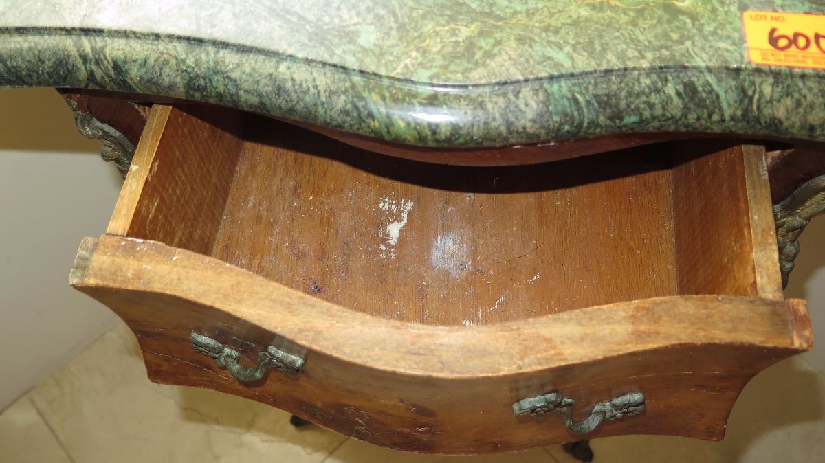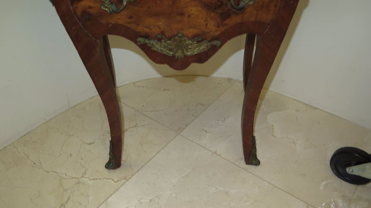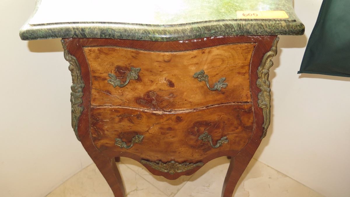 Burl Wood Bombe Chest Side Table w/Green Marble Top 32x13x28