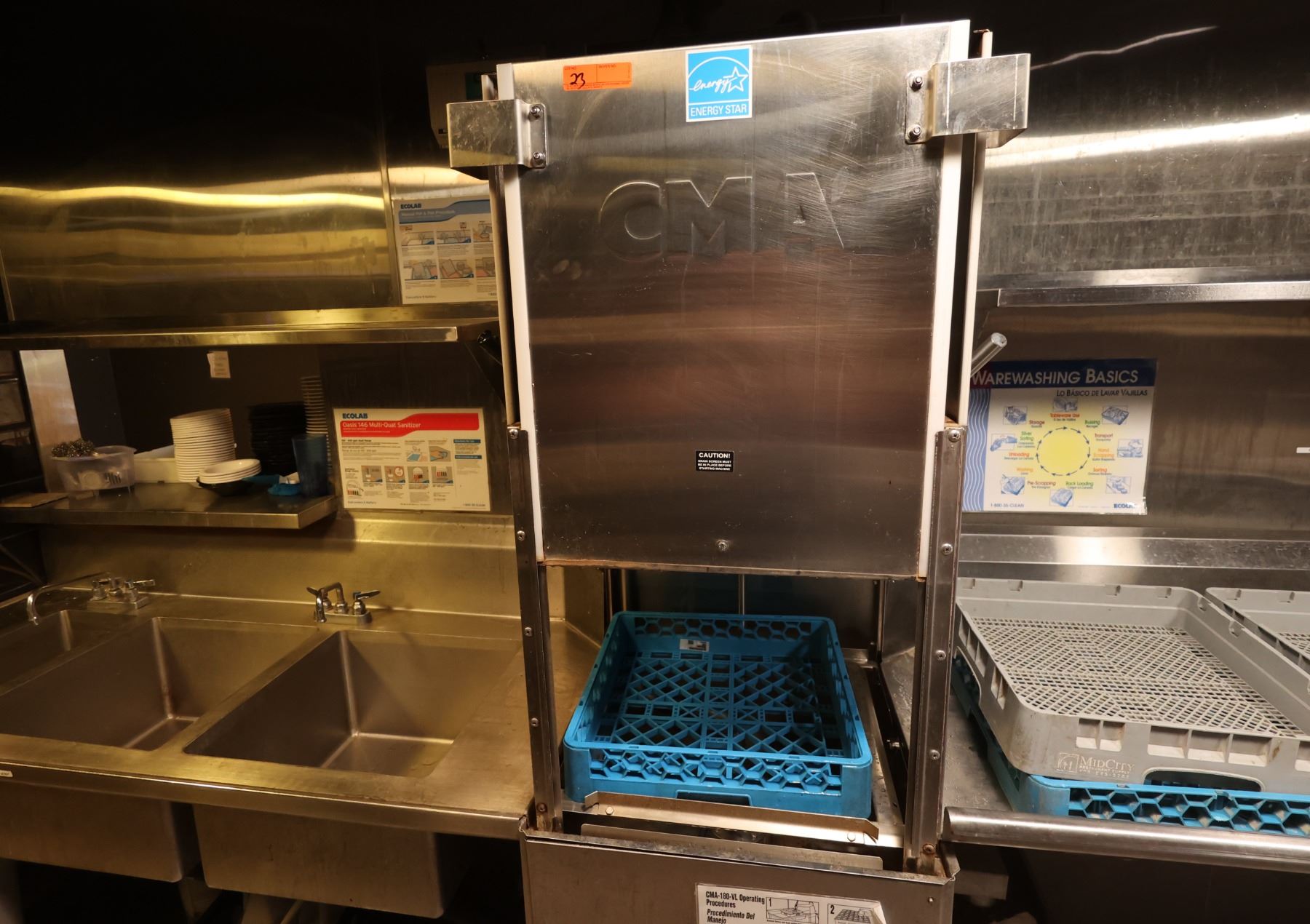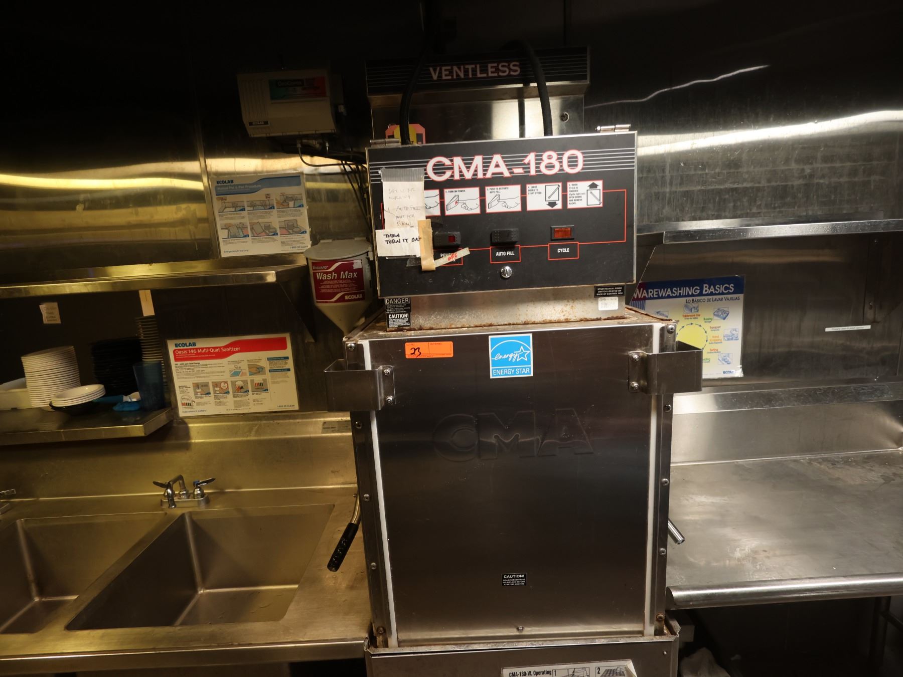 CMA Dishmachines CMA-180-VL Commercial Dishwasher w/ 2-Basin Sink 70" x 28" x 35"H & Dishtable 48" x 27"